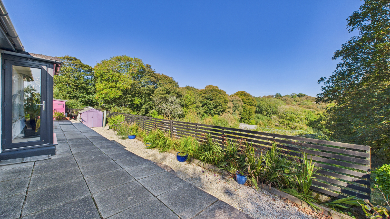 To the front of the property there is a grass verge with granite posts delineating the boundary, pedestrian gated access to front garden which is laid to granite chippings, driveway with parking for several vehicles, pedestrian gate leads to side sun terrace, enjoying the views across lawn and further garden area towards St Michael's Mount and beyond. The sun terrace and gravelled garden continue to the rear, all enclosed by wooden fencing and enjoying views across Trevaylor Valley with outside tap and boiler. Side garden has two wooden sheds and an aluminium greenhouse, laid to granite chipping with raised flower and vegetable beds and further gate to the front. To one side of the property, on a lower level, there is a wildlife garden area which borders open farmland.