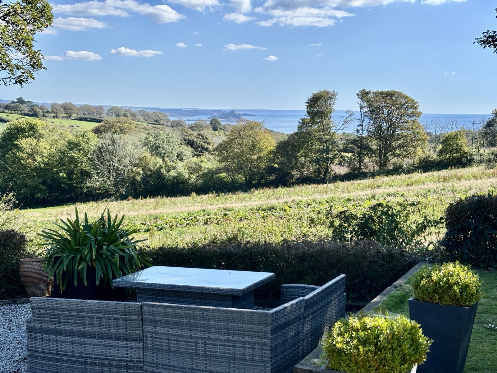 Lovely views across the countryside, towards Mounts Bay and beyond from this well-presented character three bedroom deta...