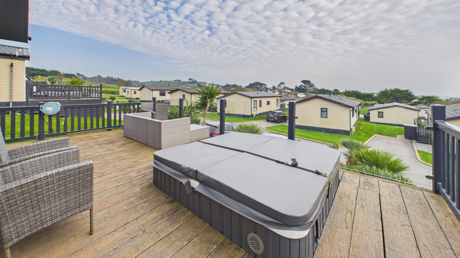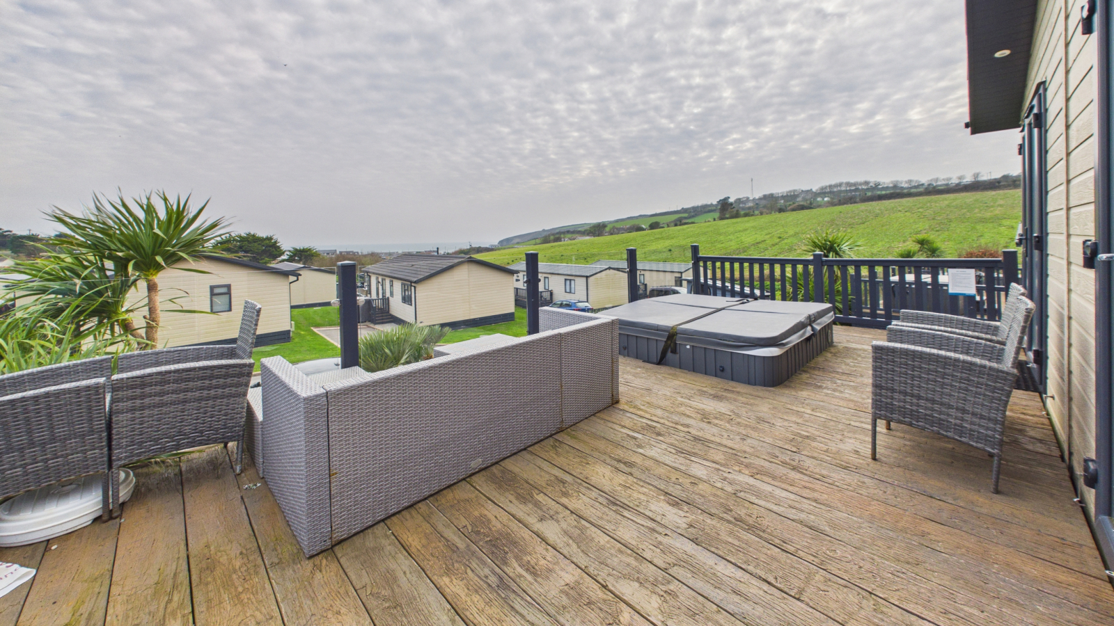 - RAISED DECKING WITH SUNKEN HOT TUB AND SEA VIEWS