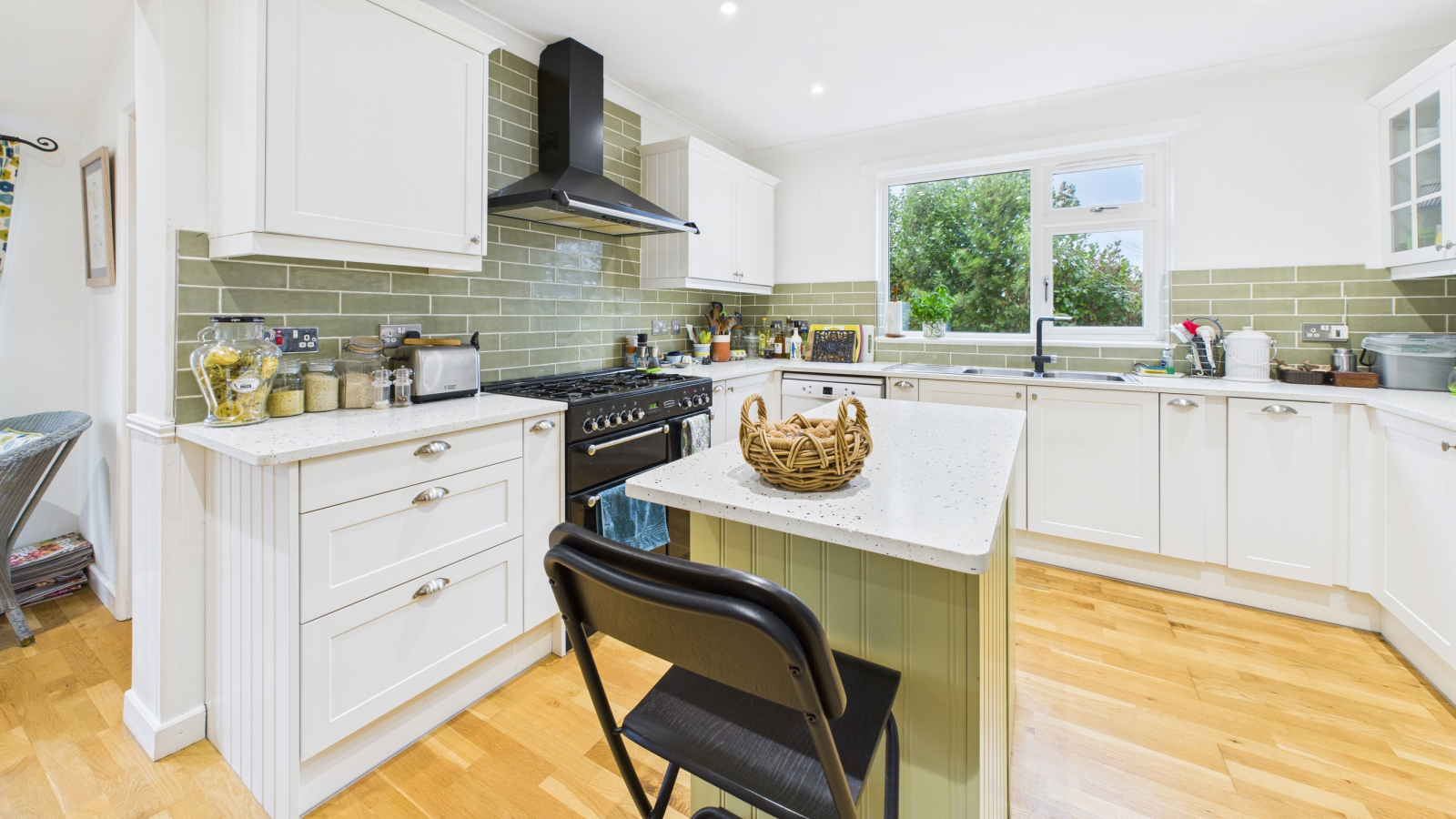 Double glazed door and window to rear, range of units with roll top worksurfaces, plumbing for washing machine, oil fired combination boiler supplying domestic hot water and central heating.