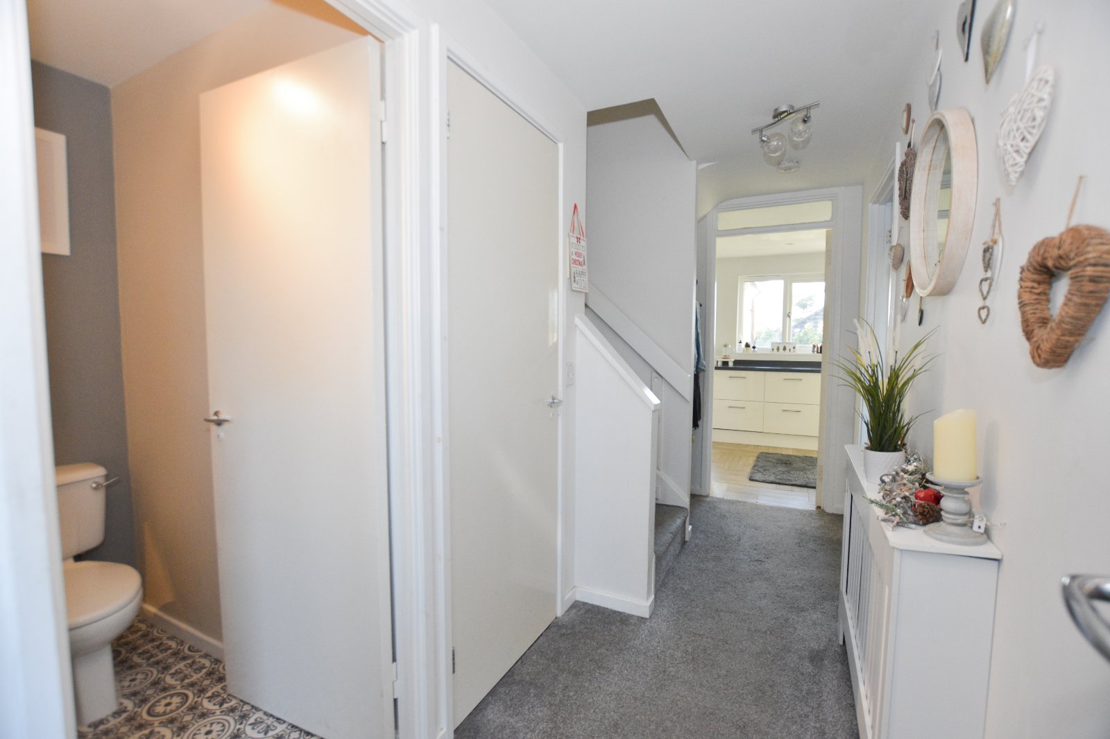 Internally there is an entrance porch with space for cloaks and storage, a useful ground floor cloak room, a lounge and a beautifully re fitted kitchen dining room. On the first floor there are three good size bedrooms and a recently fitted bathroom with a separate walk in shower. The property is warmed by gas central heating and is fully double glazed, there are also views to the rear to the north coast.