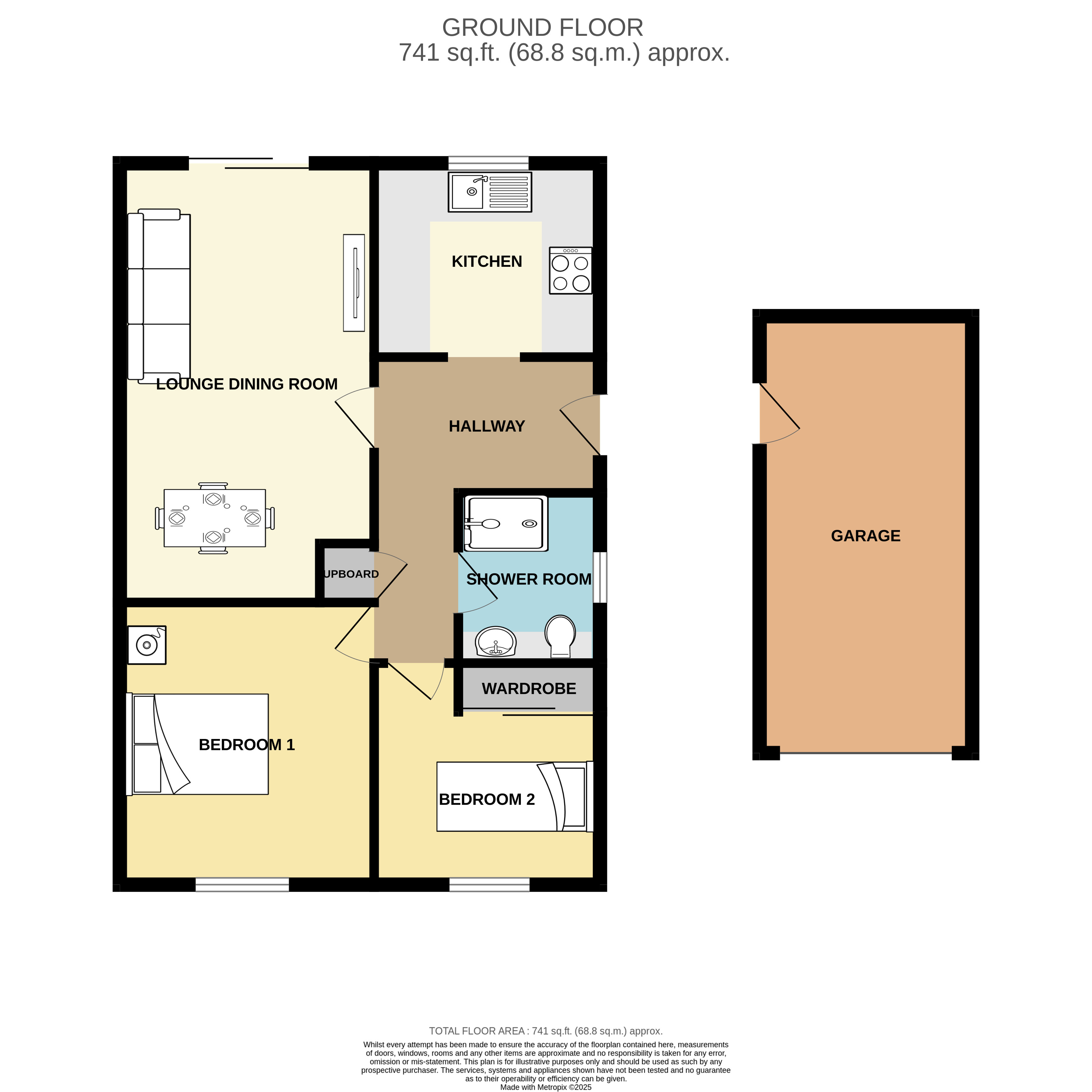 Internally the accommodation comprises a fully fitted kitchen with built in appliances, a lounge dining room, a re-fitted shower room and two double bedrooms. All internal doors have also been replaced. The property benefits from gas central heating with a new Worcester boiler (with 10 year guarantee) and is double glazed throughout with new doors and windows.