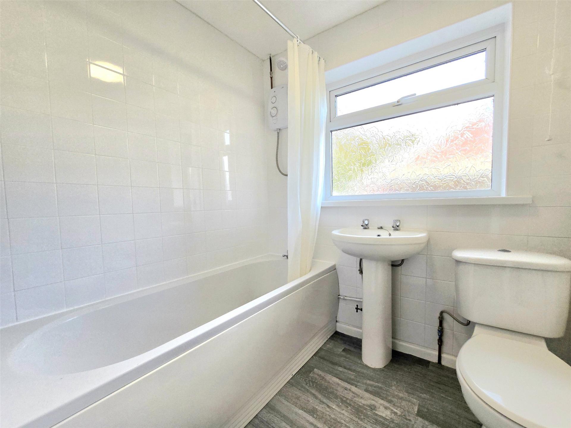 - Family bathroom with white suite and electric shower