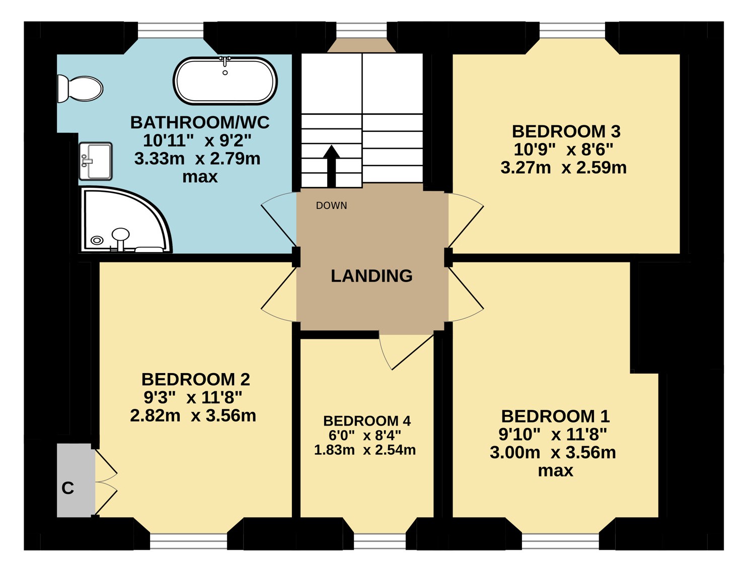 - Four first floor bedrooms and large family bathroom with freestanding bath and separate shower cubicle.