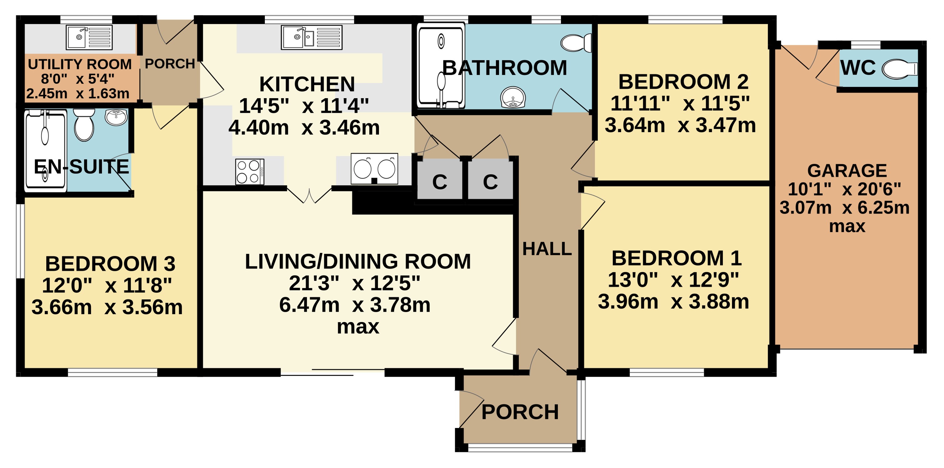 - Large lounge/dining room and spacious kitchen plus utility room.