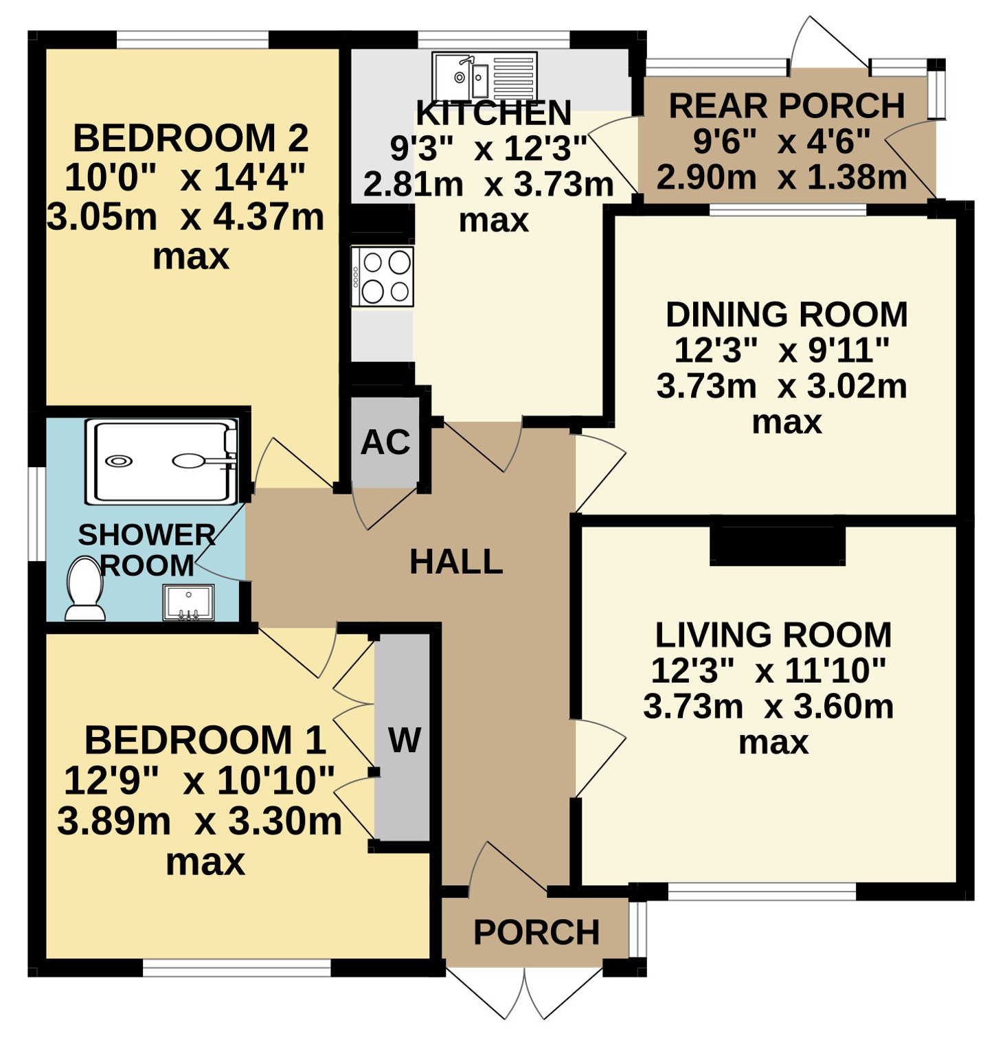 - Two double bedrooms.