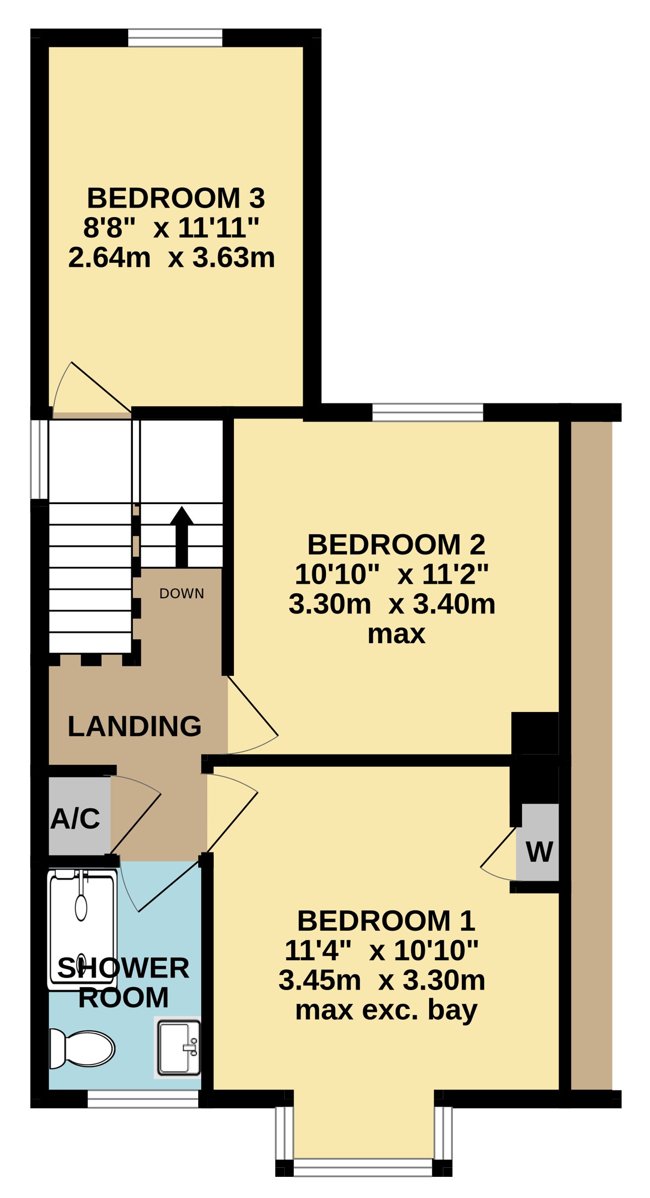 - Three double bedrooms