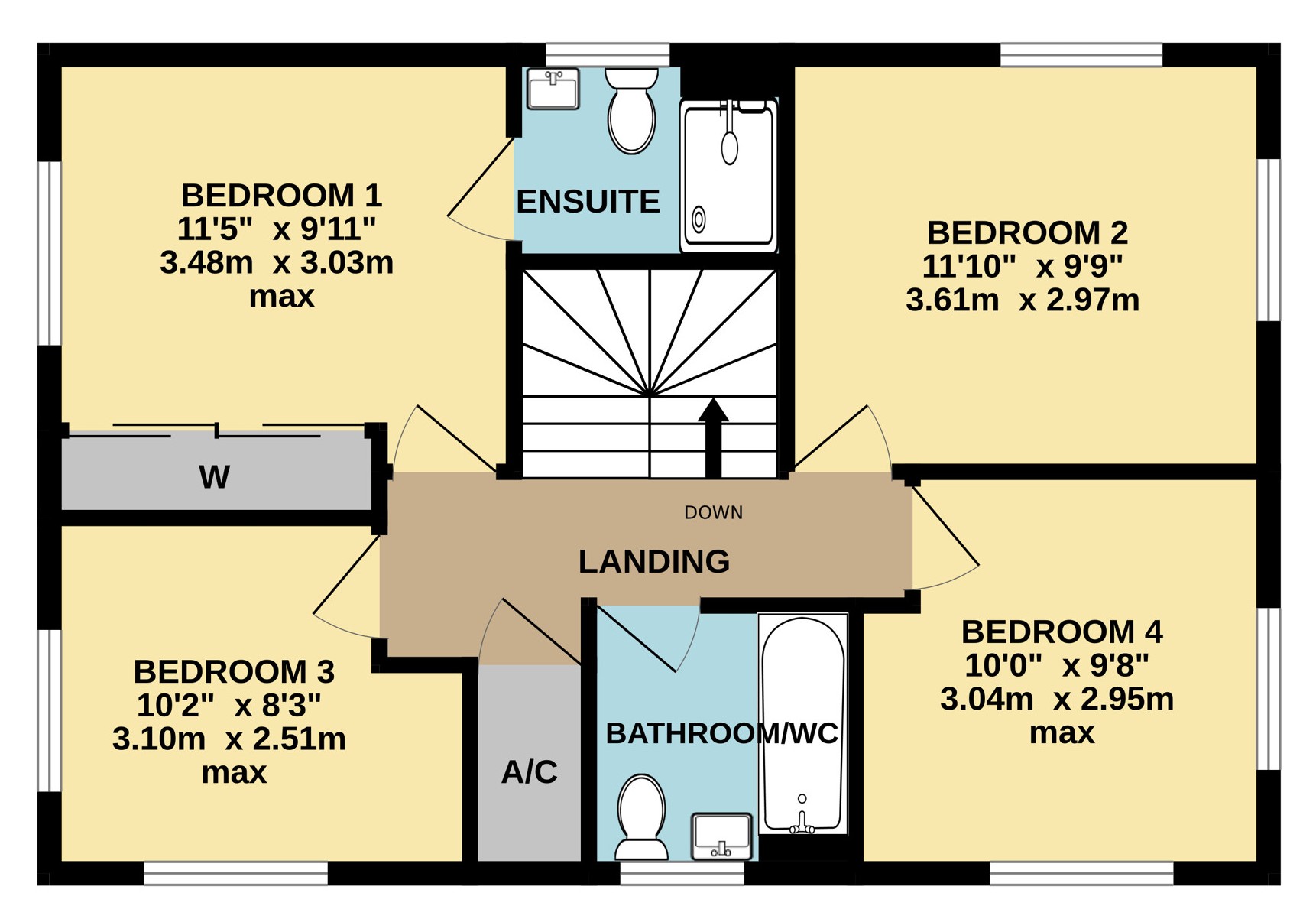 - Four bedrooms
