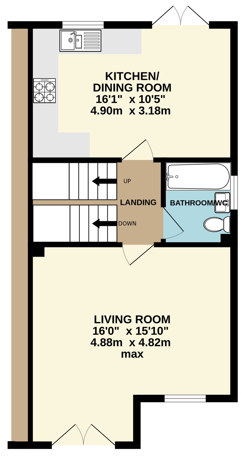- Spacious kitchen/dining room allowing access to the enclosed rear terraced garden.