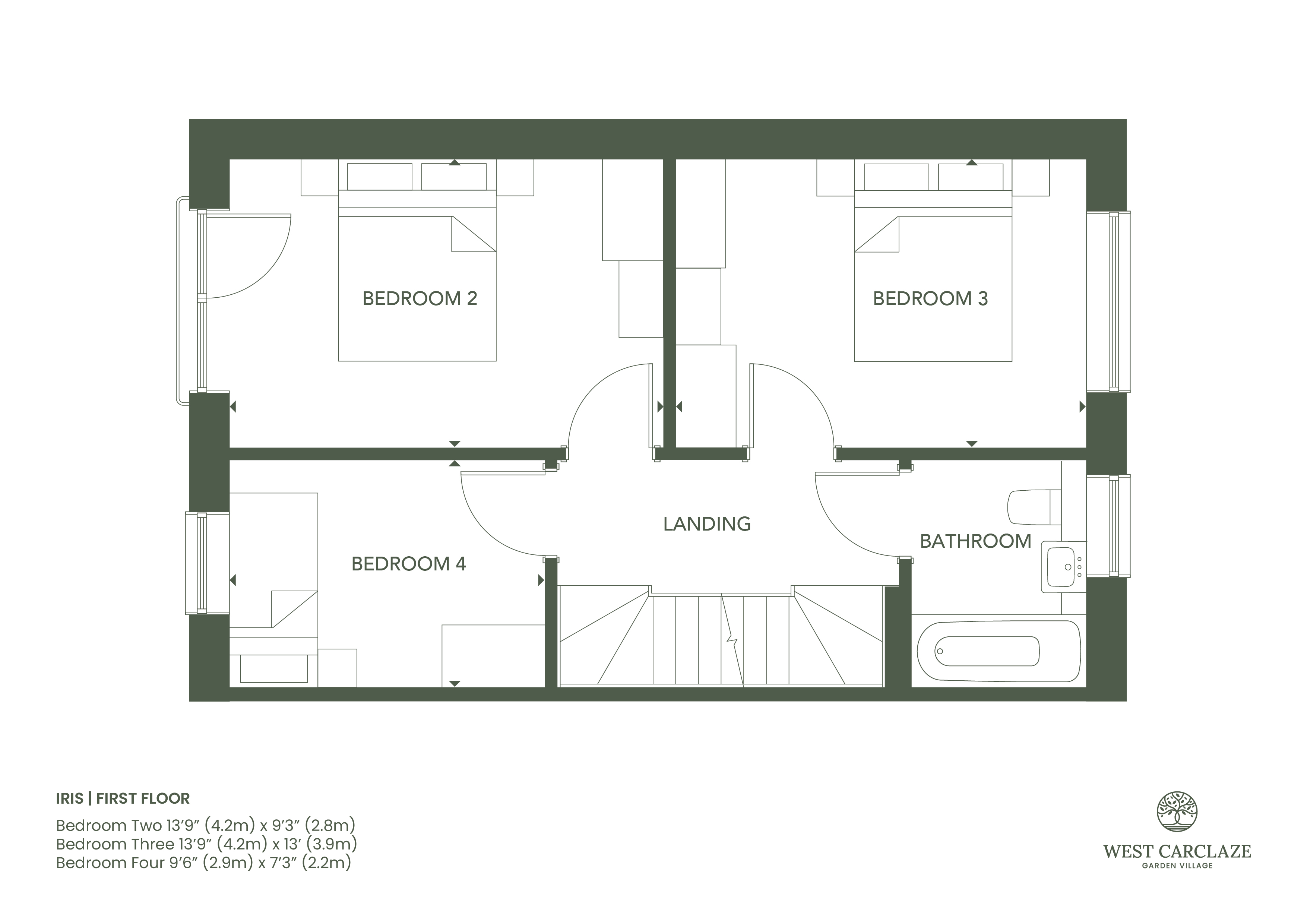 Bedroom Two 13'9" x 9'3" (4.2m x 2.82m).