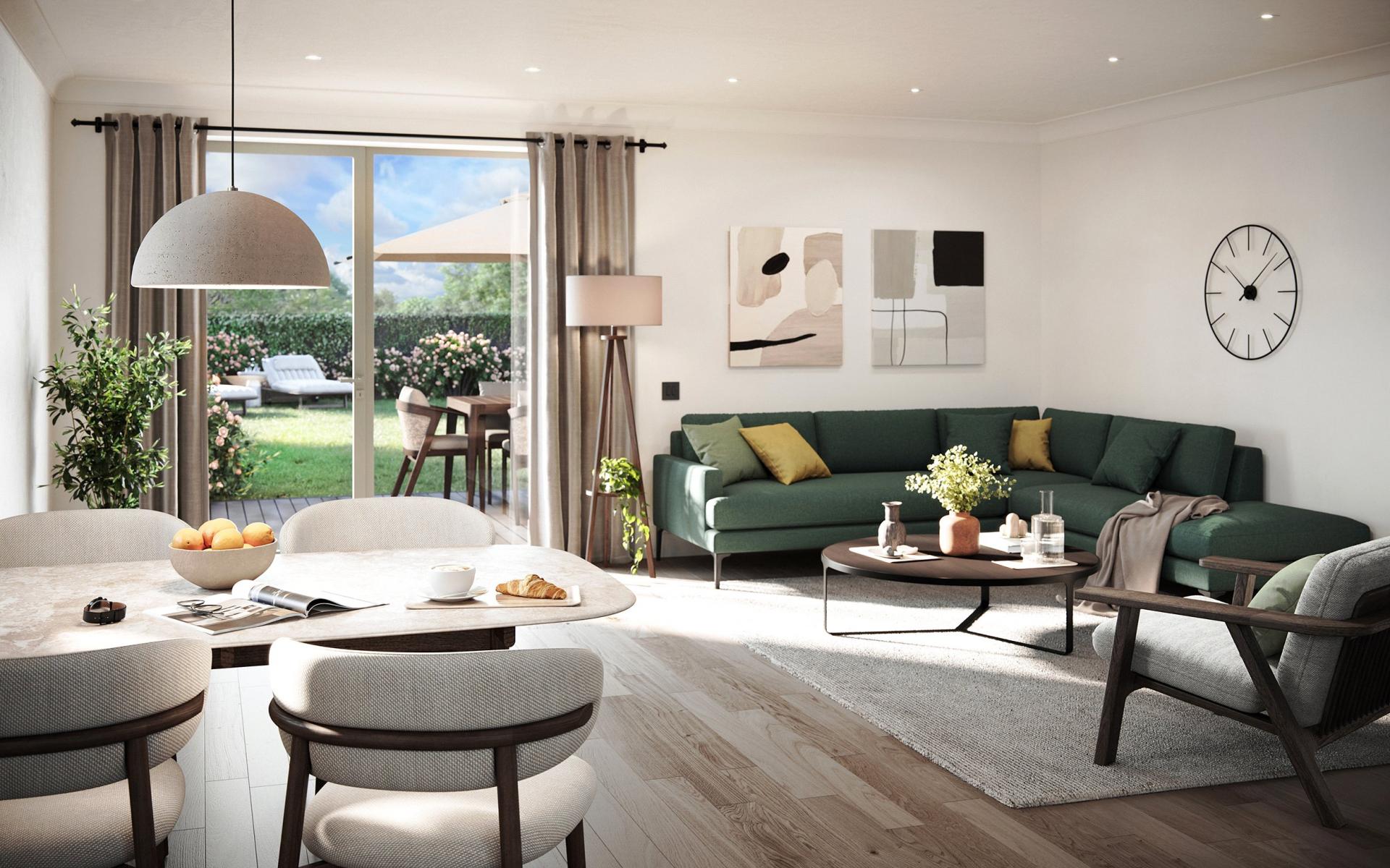 Floor to ceiling windows create light-filled living spaces with modern layout
