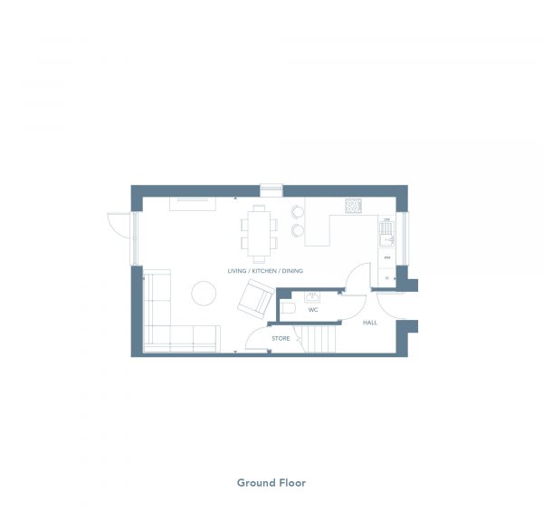 Push back the front door and enter into a spacious hallway - great storage for shoes and coats. Make your way past the WC and into the large open-plan kitchen living room. A grand room that's made for entertaining with plenty of space for sofas and a dining table that are connected to the wrap-around kitchen.