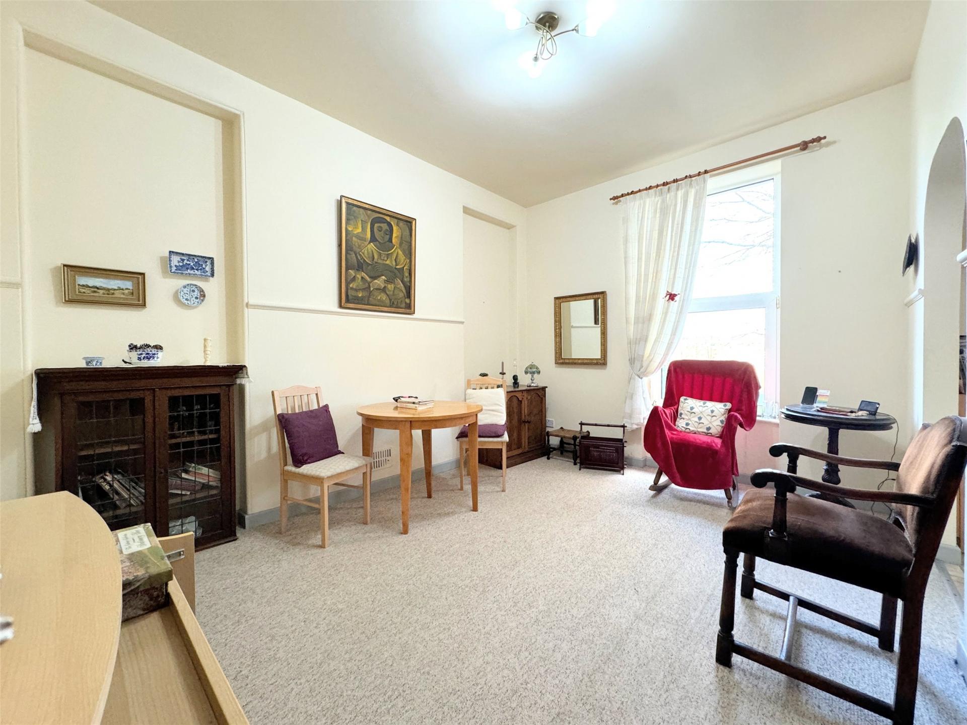 The bedroom is a double with a window that overlooks the rear. The living room is spacious with a small kitchen area with space for appliances in one corner. The wet room features shower, wash hand basin and WC.