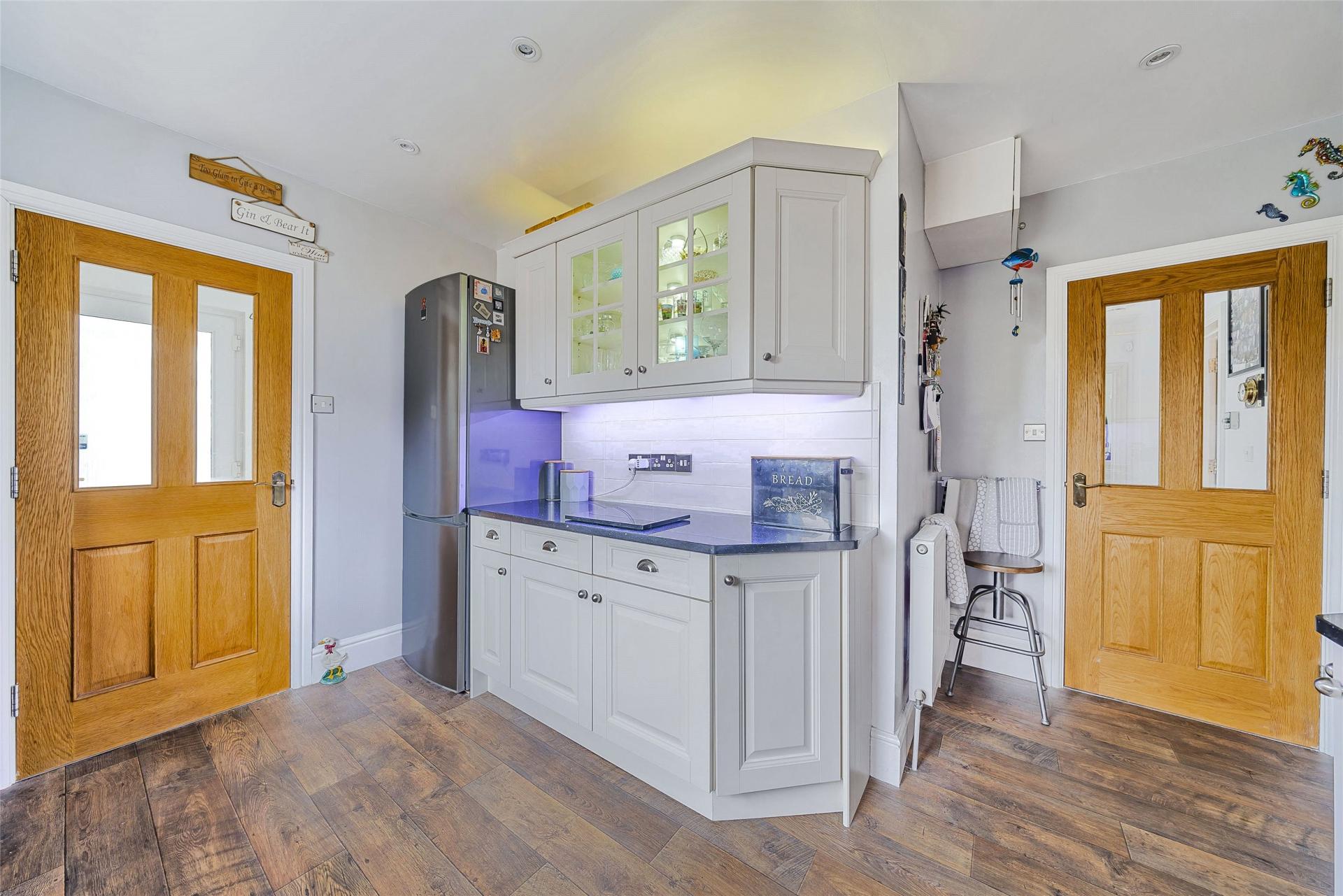 The light and airy entrance porch opens to the capacious living/dining room, also to the spacious hallway leading to a fitted kitchen with multi fuel range cooker, utility room with access to the enclosed rear garden, two double bedrooms and family bathroom.