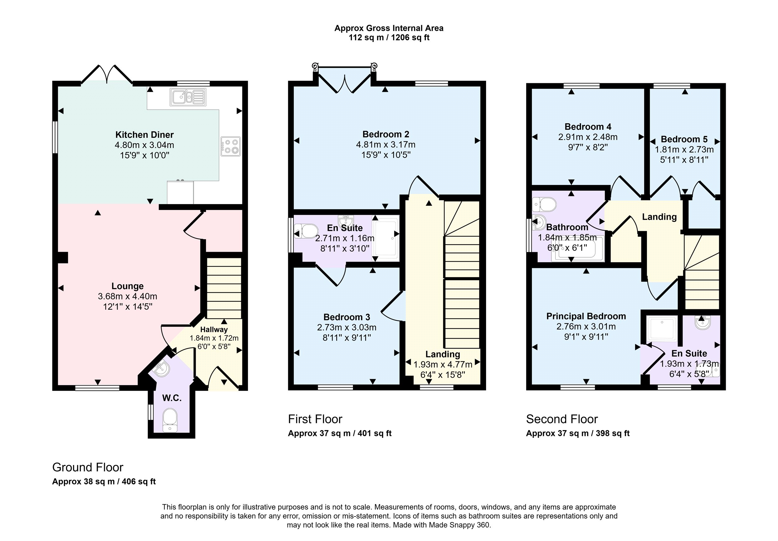 - First floor living room/fifth bedroom with Juliet balcony and views