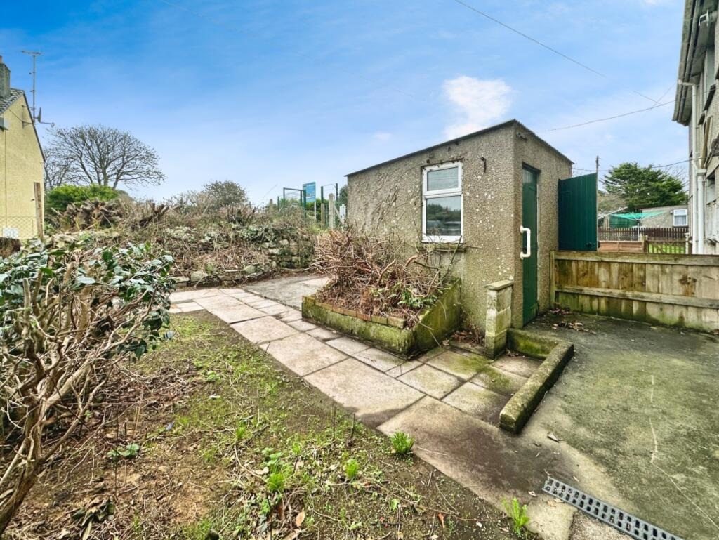 Outside - To the front there is a lawned area while to the rear there is a low maintenance enclosed garden with outbuilding providing additional storage.