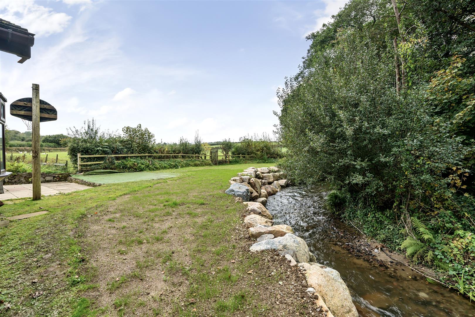 Outside, the gardens wrap around the bungalow like a warm hug and blend into the surrounding landscape of lush pastureland where the current owners have often spotted a visiting deer or two. Take a moment for a spot of birdwatching where the current owners have frequently witnessed kingfishers and dippers skipping across the water and a keen eye may even see the ripples from a brown trout. With direct access down to the river, our vendors have also reported being thrilled to see the occasional otter playing in the water. Access to nearby woodland extends the potential playing area for curious and adventurous children and adults will truly delight in the carpet of magnificent bluebells and aromatic wild garlic come the springtime. With a pretty backdrop of solid granite boulders, the current owners have spent a lot of time, care and attention in replacing the riverbank to a very high standard using quality specialists.