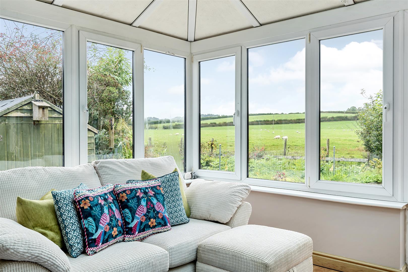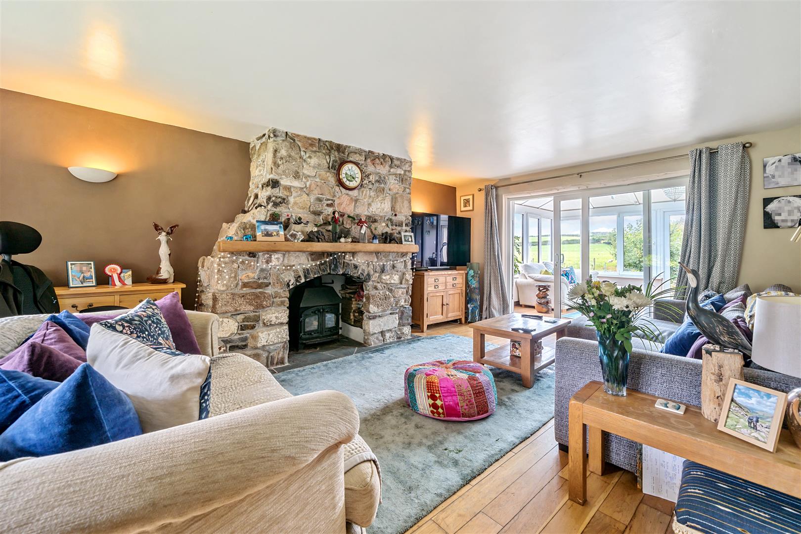 Through the attractive arched storm-porch, a central linear hallway gives access to all rooms with a clever division of bedrooms to one side. The large dual aspect sitting room combines rural charm with a neutral d?cor. Solid wood flooring and a wood burner housed inside a striking fireplace with exposed stone and a slate hearth take centre stage with double sliding doors dousing the room in natural light from the garden room. The garden room overlooks the rear garden with a superb patio area, ideal for alfresco entertaining. A well-appointed kitchen/dining room enjoys views across the front garden from its picture bay window, a super place to enjoy a meal with family and friends.