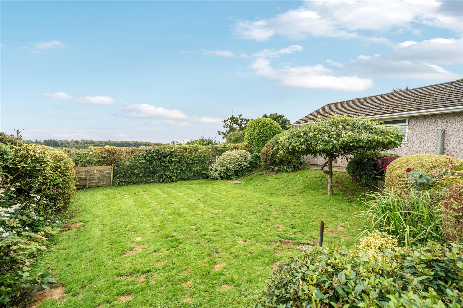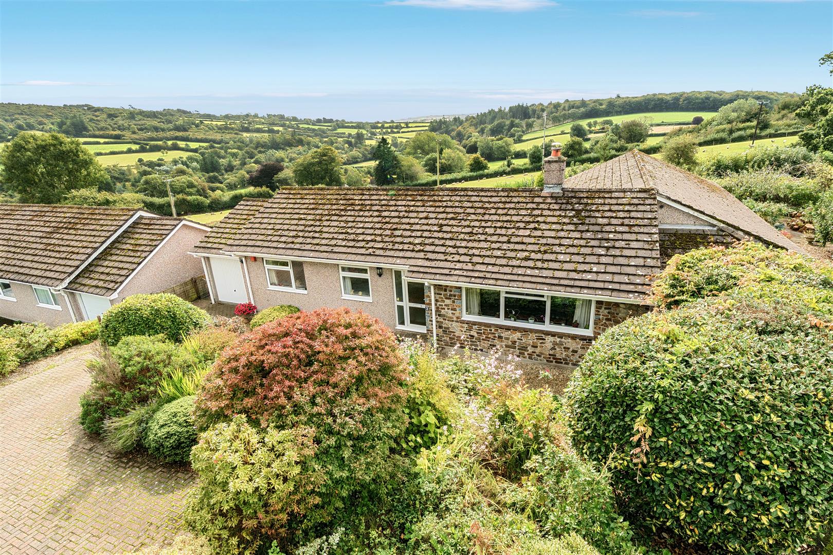 Outside, the property is approached by a block-paved driveway with ample parking for several vehicles. A frame of established shrubbery and peninsula flower-bed bring privacy and splashes of seasonal colour. A side gate invites you to the rear garden which is primarily laid to level lawn and enclosed by mature trees and shrubs. Incredibly private, a raised patio is the perfect spot to take in the uninterrupted rural views stretching towards Dartmoor.
