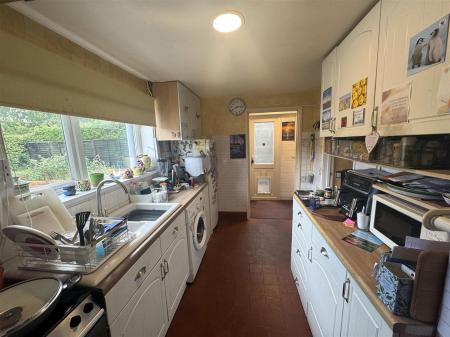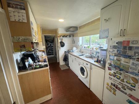Kitchen - 3.25m x 2.29m (10'8 x 7'6) - One and a half bowl single drainer sink unit with mixer tap, cupboards under, fitted base and wall mounted units, plumbing for washing machine, tiled flooring, space for fridge / freezer, double radiator, open under stairs storage with shelving, front aspect window. Opening through to: