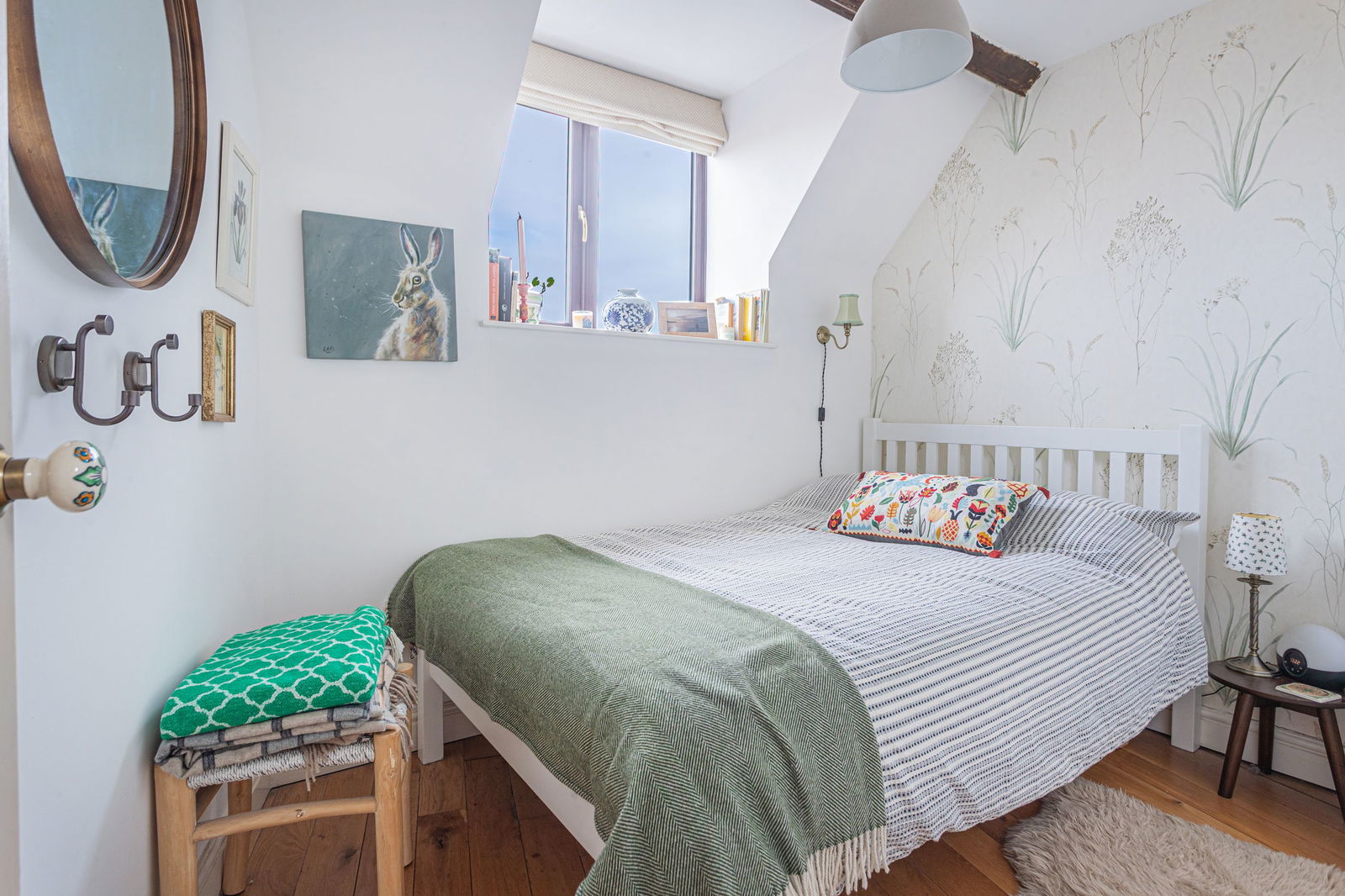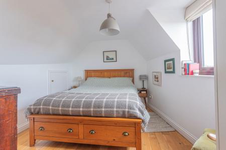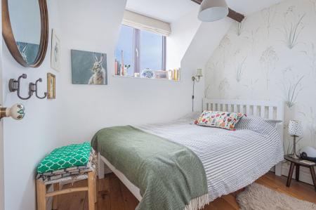 A staircase from the entrance gives access to the first floor where there are three bedrooms and an attractive bathroom with shower over bath and Velux window overlooking nearby countryside. The master bedroom benefits from the recent addition of built-in wardrobes whilst all bedrooms enjoy far-reaching views over the surrounding countryside. Bedroom three is large enough to accommodate a single bed and is also the ideal spot to use as a ‘work from home’ office.