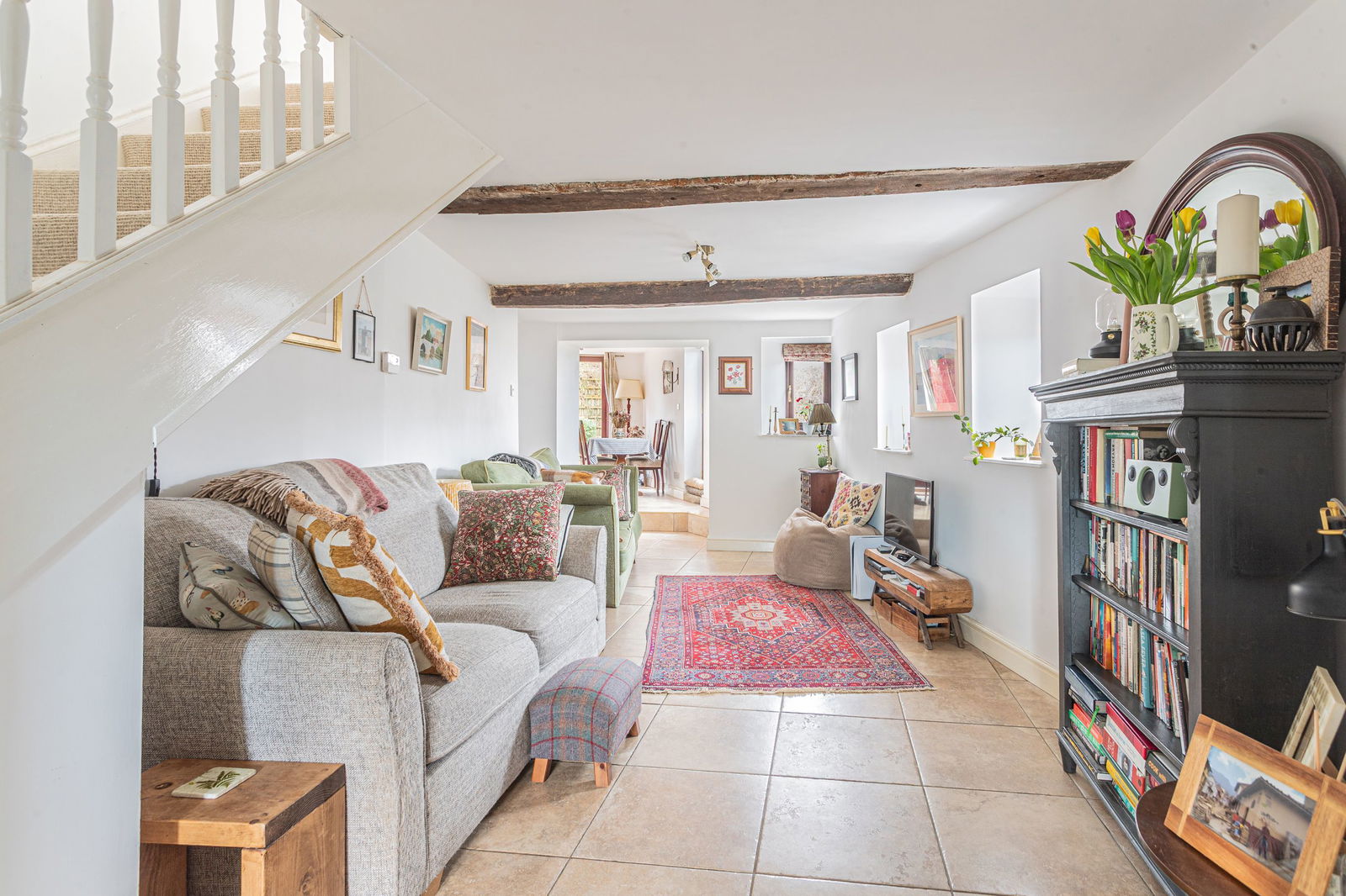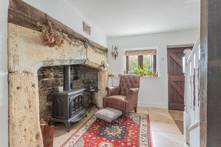 As you enter the property a useful entrance porch provides storage and a spot to kick off muddy boots and jackets. From the porch there is access into the delightful dual aspect sitting room which hosts a large Inglenook fireplace with gas stove, exposed timber beams, tiled floor and ample space for furniture. The cottage is full of period features but has also been modernised with underfloor heating to create a practical and comfortable home.