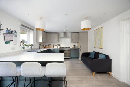 As you enter the property, you are greeted by a porch which offers the perfect space to kick off muddy boots and jackets. An inner door leads to the central hallway, which gives access to the ground-floor accommodation and a downstairs WC. Overlooking the front and rear aspects is the living room, which measures an impressive 21'10" x 13'1". Currently used as a sitting room and formal dining room, this reception space offers families flexibility and enjoys natural light throughout the day. From the central hallway, and overlooking the rear garden, is the open-plan kitchen–diner/family room. Forming part of an extension by the current owners, this space provides room for a large breakfast table and seating area with views over the garden. The kitchen comprises modern wall and base units, integrated appliances, and a breakfast bar ideal for families. In addition, a generous utility room overlooks the front aspect, with space for a washer/dryer and ample storage available.