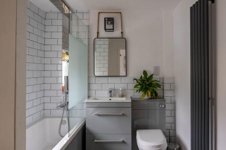 Stairs lead to the first floor, which houses three bedrooms, including two double bedrooms and a generous single bedroom. Both double bedrooms offer ample space for bedroom furniture, while a modern family bathroom, fitted with a bath and overhead shower, completes the first floor.