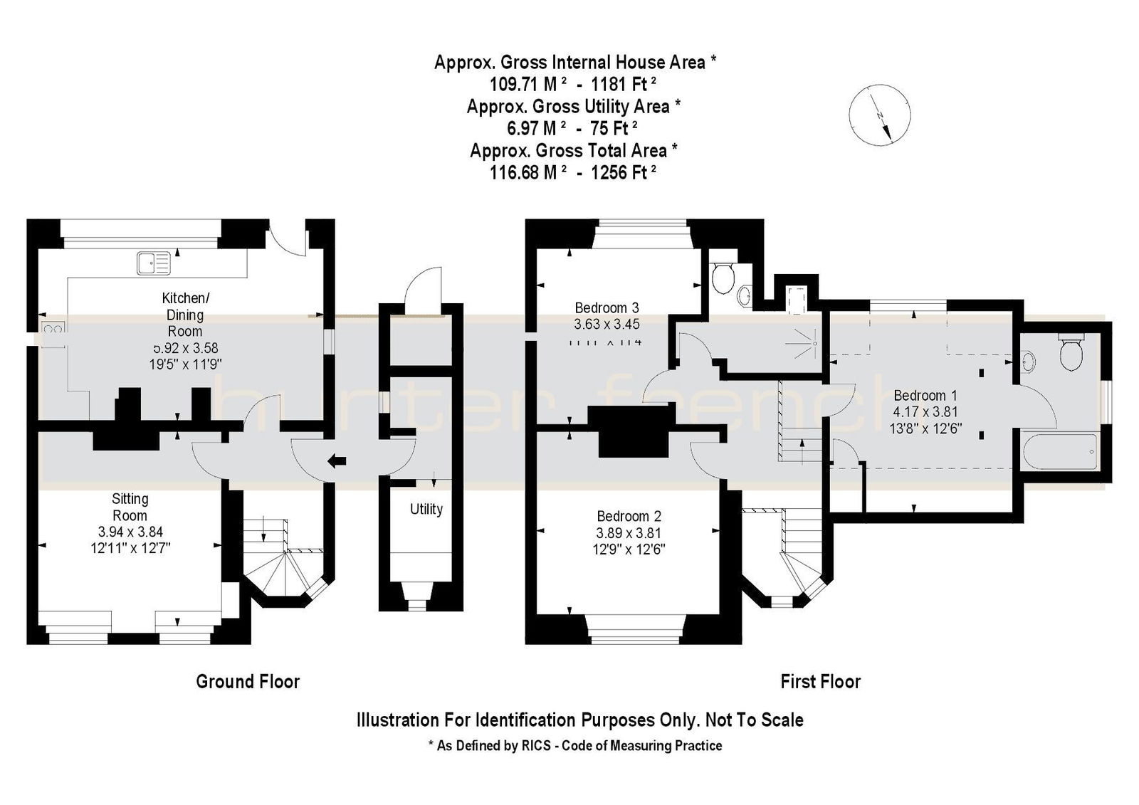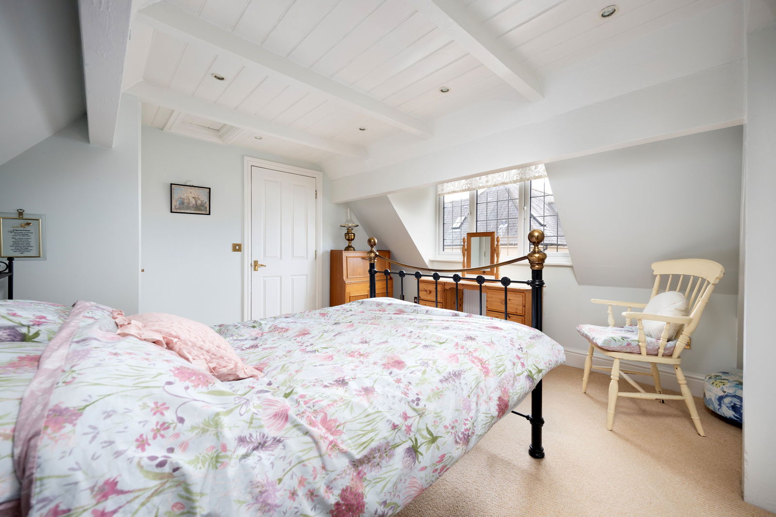 Stairs to the first-floor lead to the two double bedrooms and the family bathroom. Each bedroom is large enough for a double bed and they overlook the front and rear gardens. To complete the first floor the family bathroom comprises of a white suite with shower cubicle. A half-staircase from the landing gives access to the master bedroom complete with ensuite bathroom. The master bedroom measures an impressive 13' 8" x 12' 6" with a built-in wardrobe and space for hanging within the eaves.