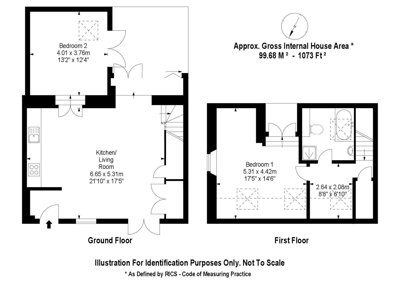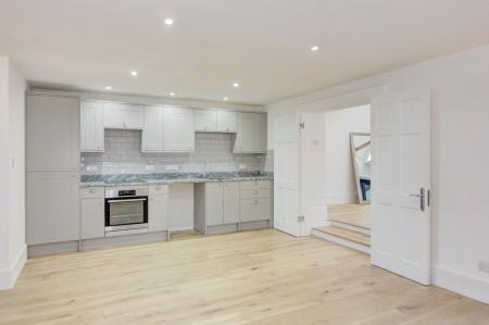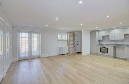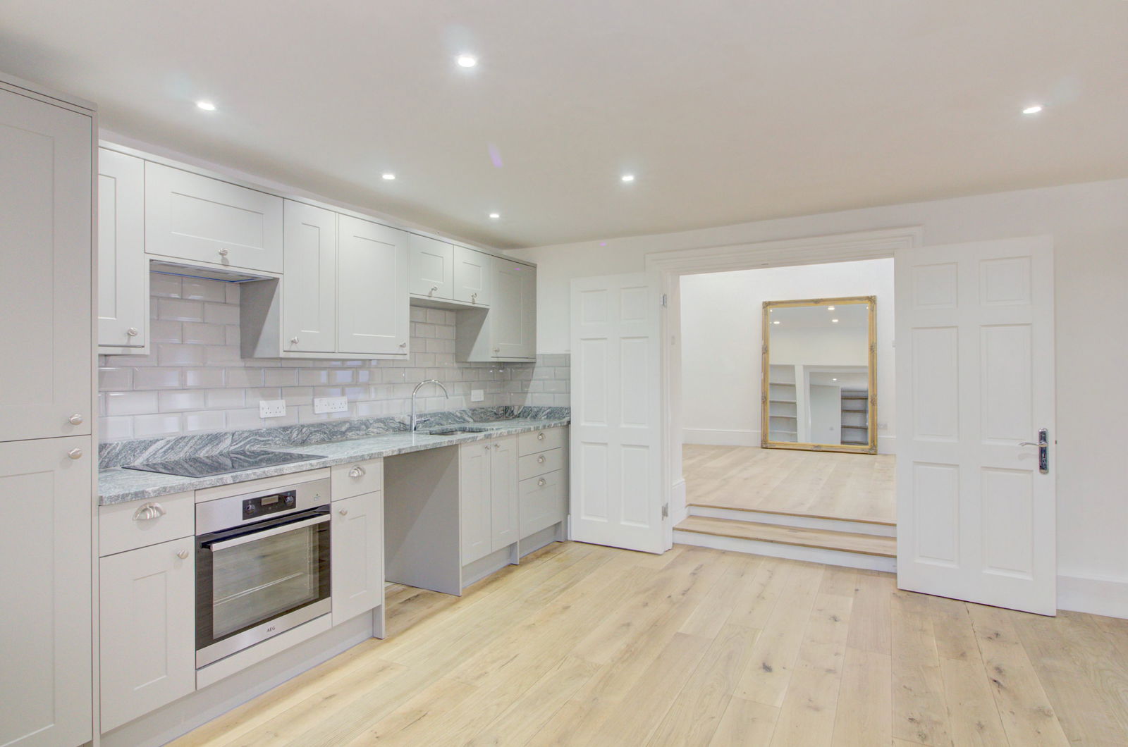 As you enter the property you are greeted by a large open plan kitchen-diner / sitting room which measures a substantial 21’ 10” x 17’ 5”. The brand-new kitchen comprises of fully fitted wall and base units with a built-in oven and hob, fridge freezer, and space for freestanding appliances. The sitting room has been designed to give external access front and rear via French doors which also provide lots of natural light. Within the sitting room there are multiple useful storage cupboards and the staircase to the first floor. To complete the ground floor, located at the rear of the property is an additional reception room / bedroom two. Measuring 13’ 2” x 12’ 4”, this space provides ample of space for a king-size bed yet would equally make a brilliant office, dining room, or snug, with French doors out to the rear courtyard garden.