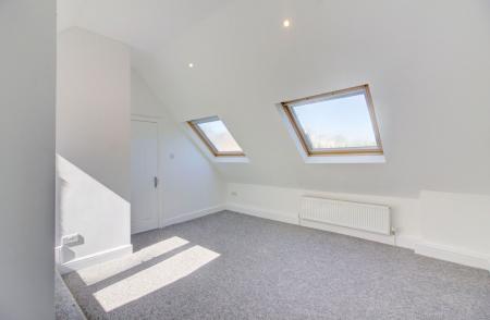 Stairs to the first floor leads to a spacious landing area, which has space for desk / storage, which in turn gives access to the master bedroom and family bathroom. The triple aspect master bedroom enjoys countryside views and has access to a small roof terrace. The perfect place for a morning coffee! There is ample space for a king-size bed as well as additional freestanding storage. To complete the first floor, the newly fitted family bathroom comprises of a modern white suite with full-size bath and separate walk in shower.