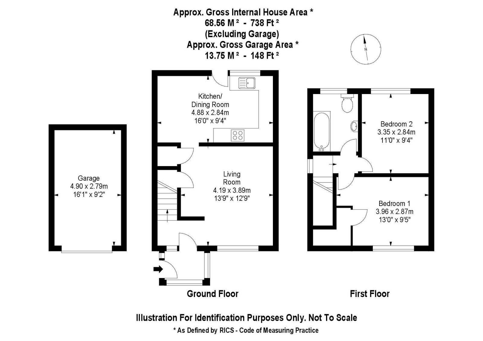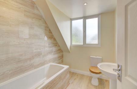 Stairs to the first-floor lead to both double bedrooms and the family bathroom. Bedroom one and bedroom two are similar in size and both have plenty of space for a double bed. Bedroom one further benefits of built-in storage positioned over the stairwell. To complete the first floor, the family bathroom has been modernised with neutral tones and comprises of a white suite with bath and overhead shower.