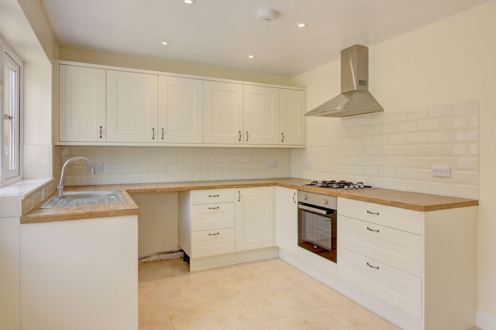 As you enter the property through a useful porch, an inner doorway leads to the sitting room and staircase to the first floor. The sitting room overlooks the front aspect and provides generous proportions measuring 13’ 9” x 12’ 9”. There is a large window which fills the room with natural light courtesy of its southerly orientation, whilst there is ample space for furniture and an understairs cupboard provides further storage. Overlooking the rear garden is the kitchen-diner / breakfast room. The kitchen comprises fully fitted Shaker-style wall and base units, as well as an integrated oven and gas hob, with space for freestanding appliances such as fridge freezer, washing machine and dishwasher. There is also space for a dining / breakfast table whilst a patio door gives access to the garden.