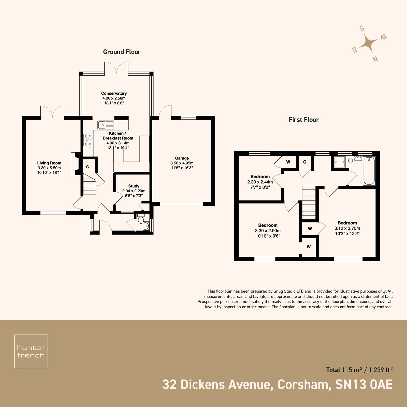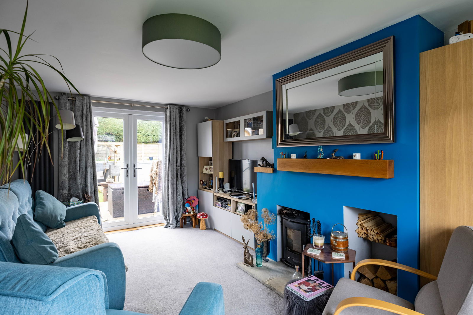 Completing the ground floor is the well-proportioned sitting room, measuring 18’1” x 10’10”, which truly forms the heart of the home. The room is flooded with natural light thanks to its southerly aspect, with patio doors providing direct access to the garden. A log burner adds warmth and character, creating a cosy and inviting atmosphere.