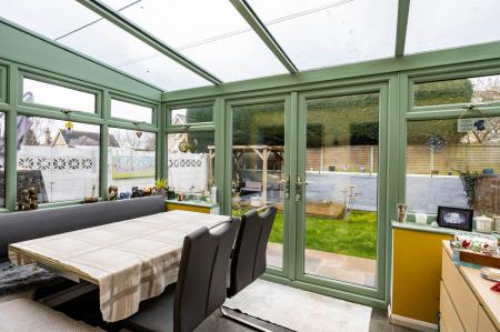 Overlooking the rear garden, the kitchen features a range of fitted wall and base units, providing generous storage and worktop space, as well as room for a variety of freestanding appliances. The kitchen offers direct access to the conservatory with electric underfloor heating and solar reflective glass, currently used by the owners as a dining room. There is also a downstairs office area, ideal for those working from home. Subject to the necessary permissions, there is potential to reconfigure the kitchen and conservatory to create a spacious open-plan kitchen/dining area if desired.