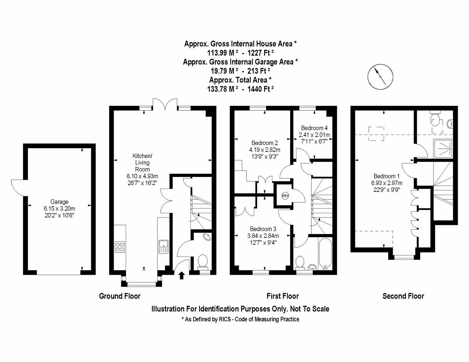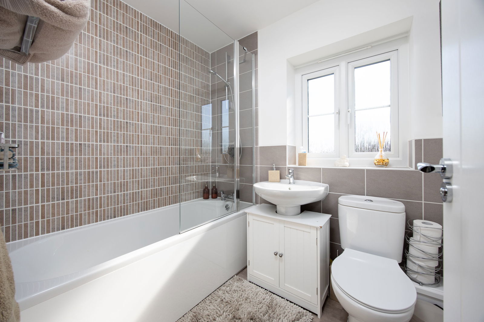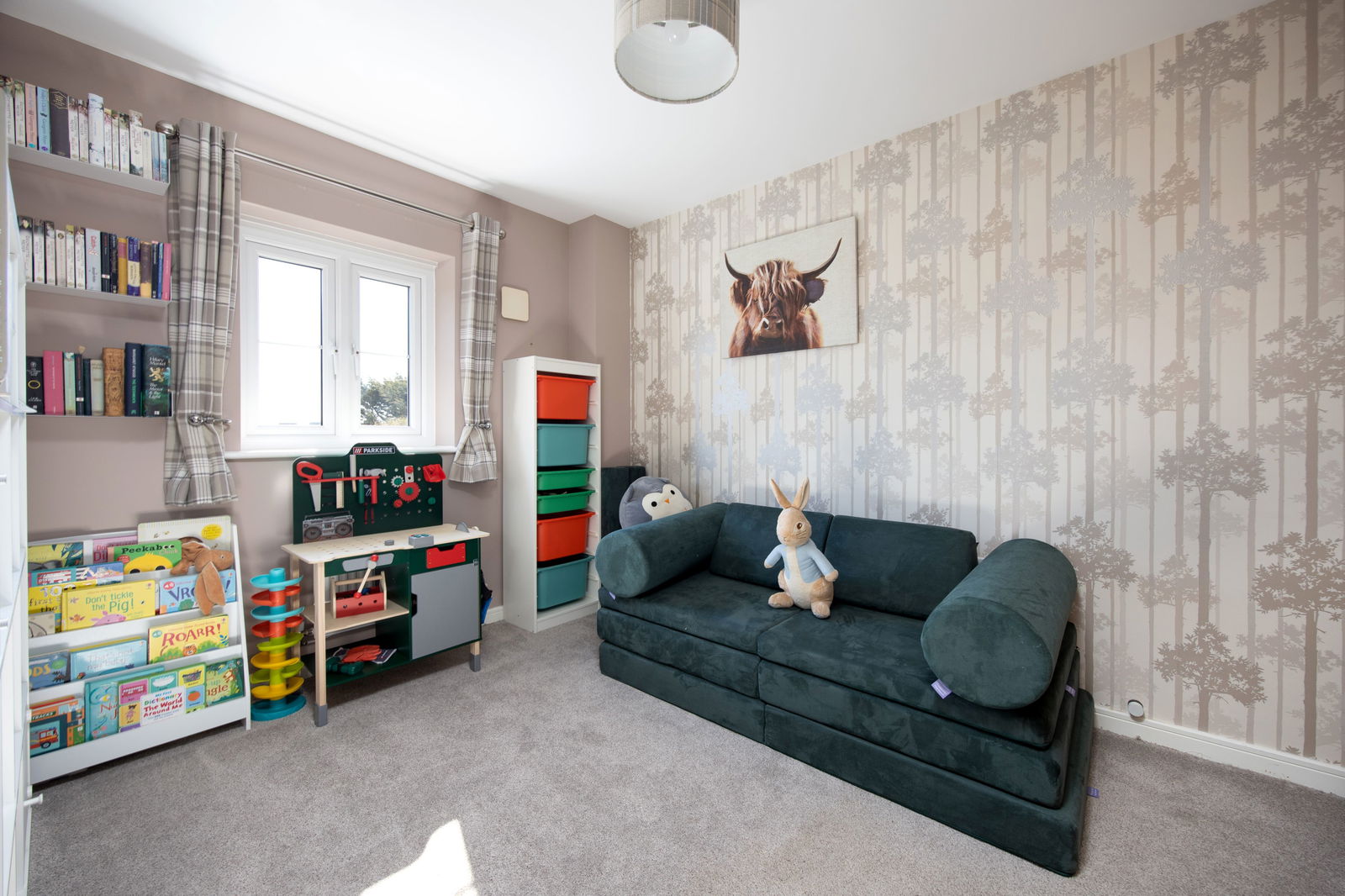 Stairs to the first floor give access to three bedrooms, comprising of two double bedrooms and one single bedroom, the latter would make an ideal nursery or ‘work from home’ office. Each of the double bedrooms offer generous space with fitted wardrobes and the rear bedroom benefitting from custom-made built-in storage and desk. A modern family bathroom with bath and overhead shower completes the first floor.