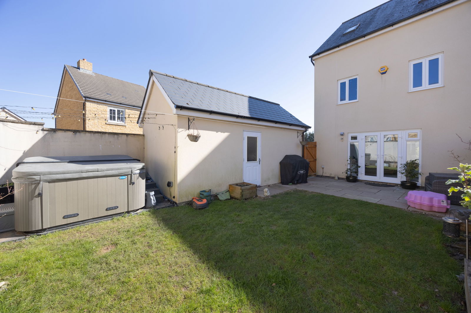 Externally, the property sits on a corner plot within the development which helps create added privacy in the rear garden. The garden remains fully enclosed and mostly laid to lawn with raised flower borders to help create a safe haven for children to play. A patio is accessible from the sitting room allowing for a spot for al-fresco dining with space for outdoor furniture, whilst a suntrap behind the garage has space for a hot tub. There is also the added benefit of 'front to rear' side access and detached single garage for storage. To the front there is off-street parking for two cars.