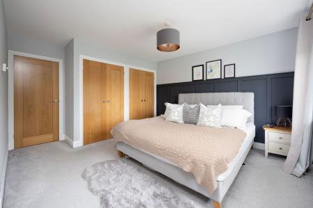 Head up the stairs and onto the galleried landing and you will find four very well-proportioned bedrooms to choose from. The master suite benefits from plenty of storage in the in-built wardrobes and showcases a well-appointed en-suite shower room. The further three bedrooms are all large enough to accommodate a double bed and enjoy pleasant views front and back. To complete the first floor, there is a sleek family bathroom comprising of a modern white suite with bath and overhead shower.