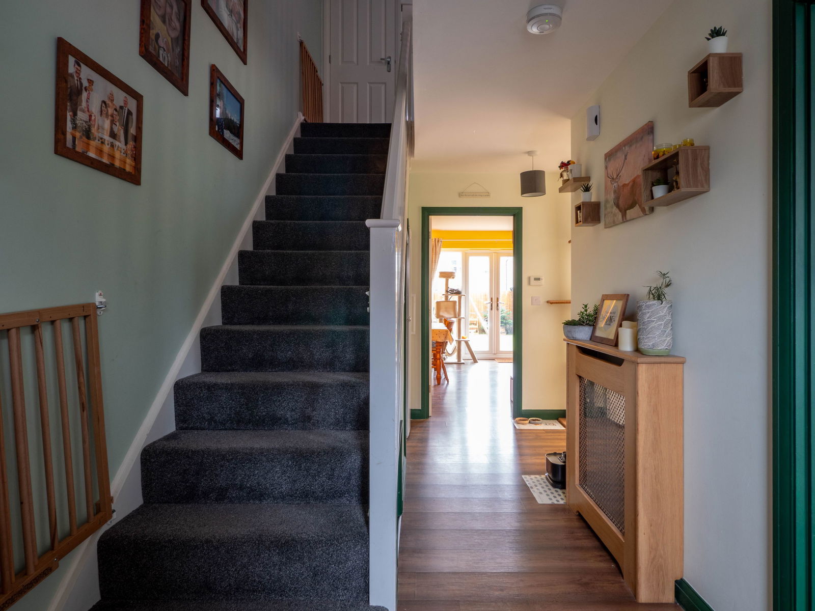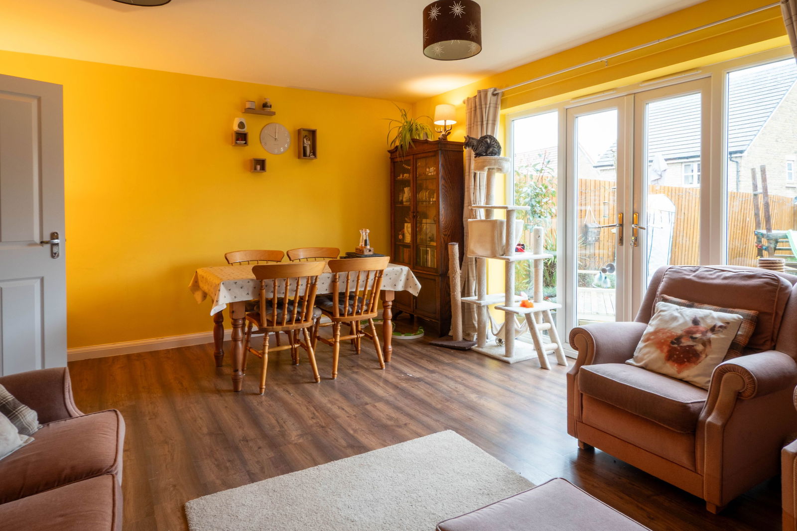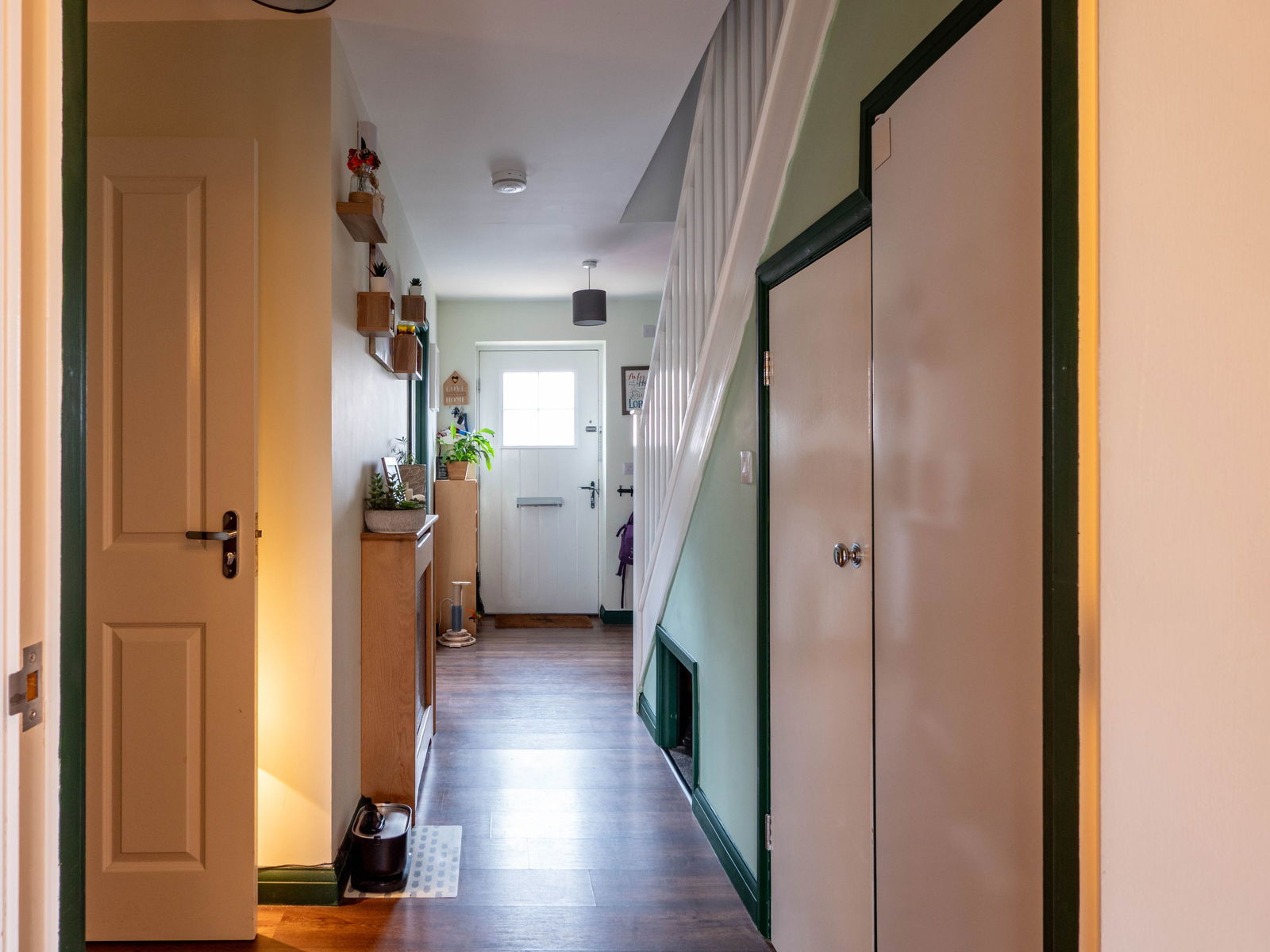 Externally, the property sits in a quiet position within Park Place. There is driveway parking to the front for two cars as well as ample on-street parking available for guests. The rear garden has been designed to provide a safe space for children to play with a level lawn area and remains fully enclosed. A patio accessible from the sitting creates the perfect spot to enjoy al-fresco dining whilst a large wooden shed provides plenty of additional storage space.