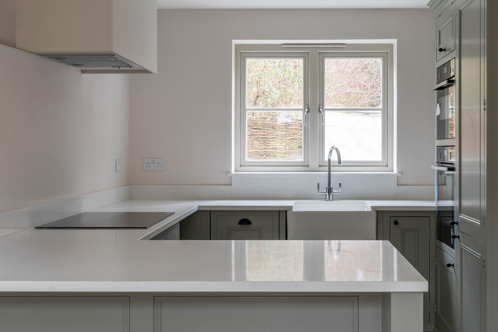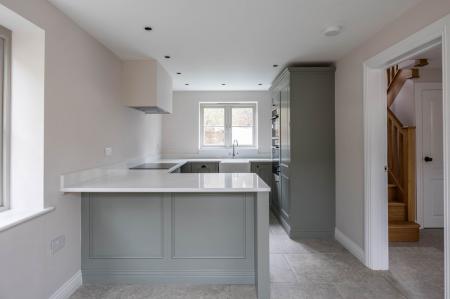 Accessible from the hallway is the kitchen-diner which has been completed to a high standard with fitted wall and base units and integrated appliances. Quartz worktops provide plenty of working space whilst a breakfast bar provides space to dine. There is also ample space for a freestanding dining table with views over the front and rear garden.