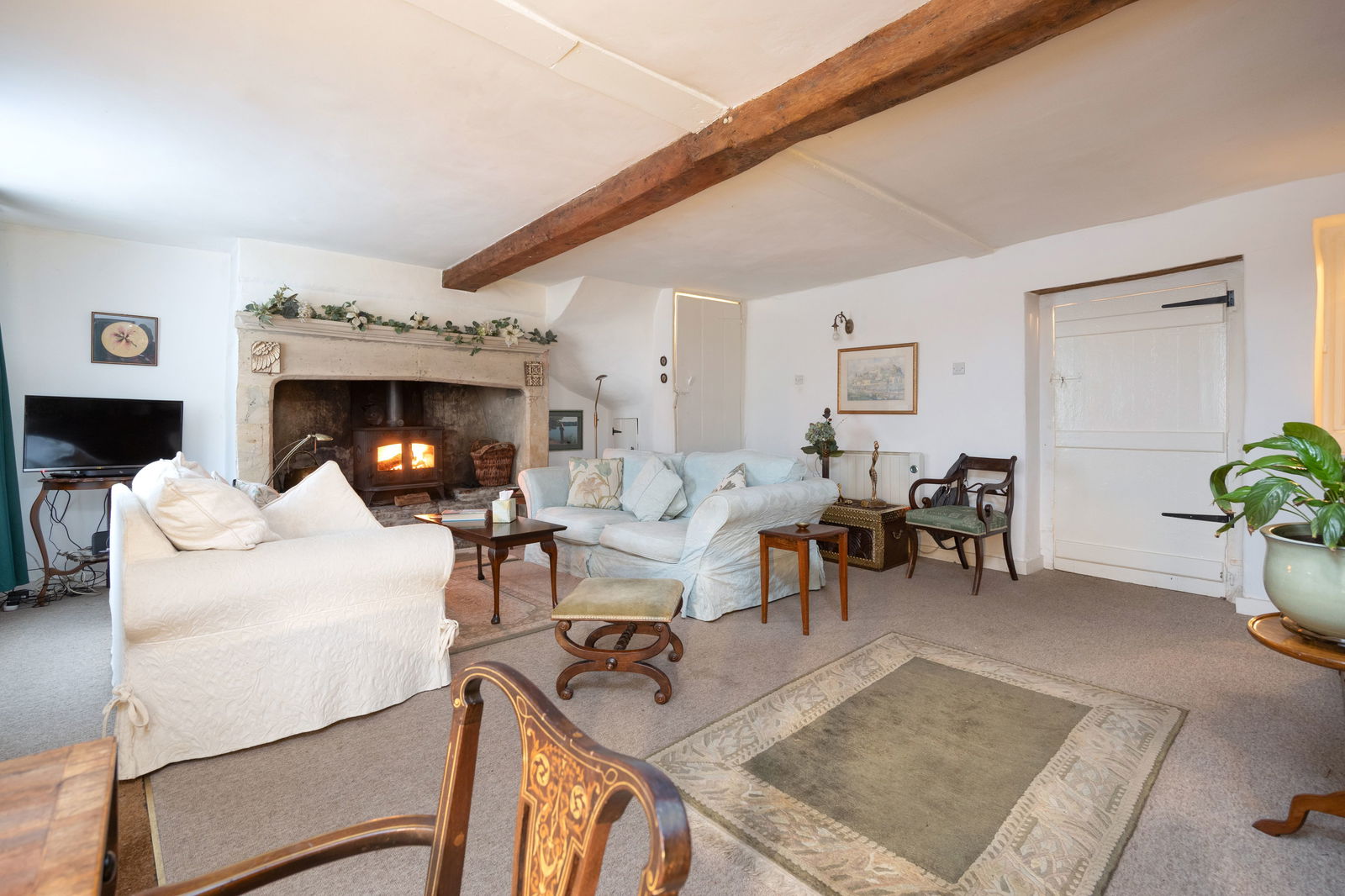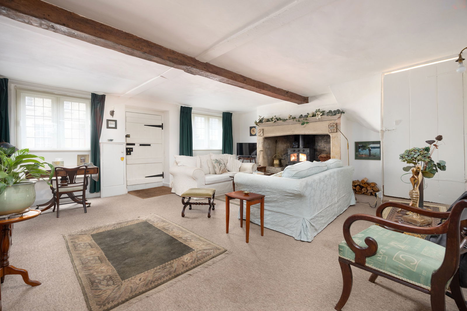 Located in the historic area of Pickwick, Corsham, this attractive Grade II Listed home offers rooms of sizeable proportion and flexible accommodation that spans three storeys. The ground floor enjoys a large and inviting sitting room that measures 19’ 1” x 17’ 3”, featuring exposed wooden beams and an impressive inglenook fireplace with a working wood burner.