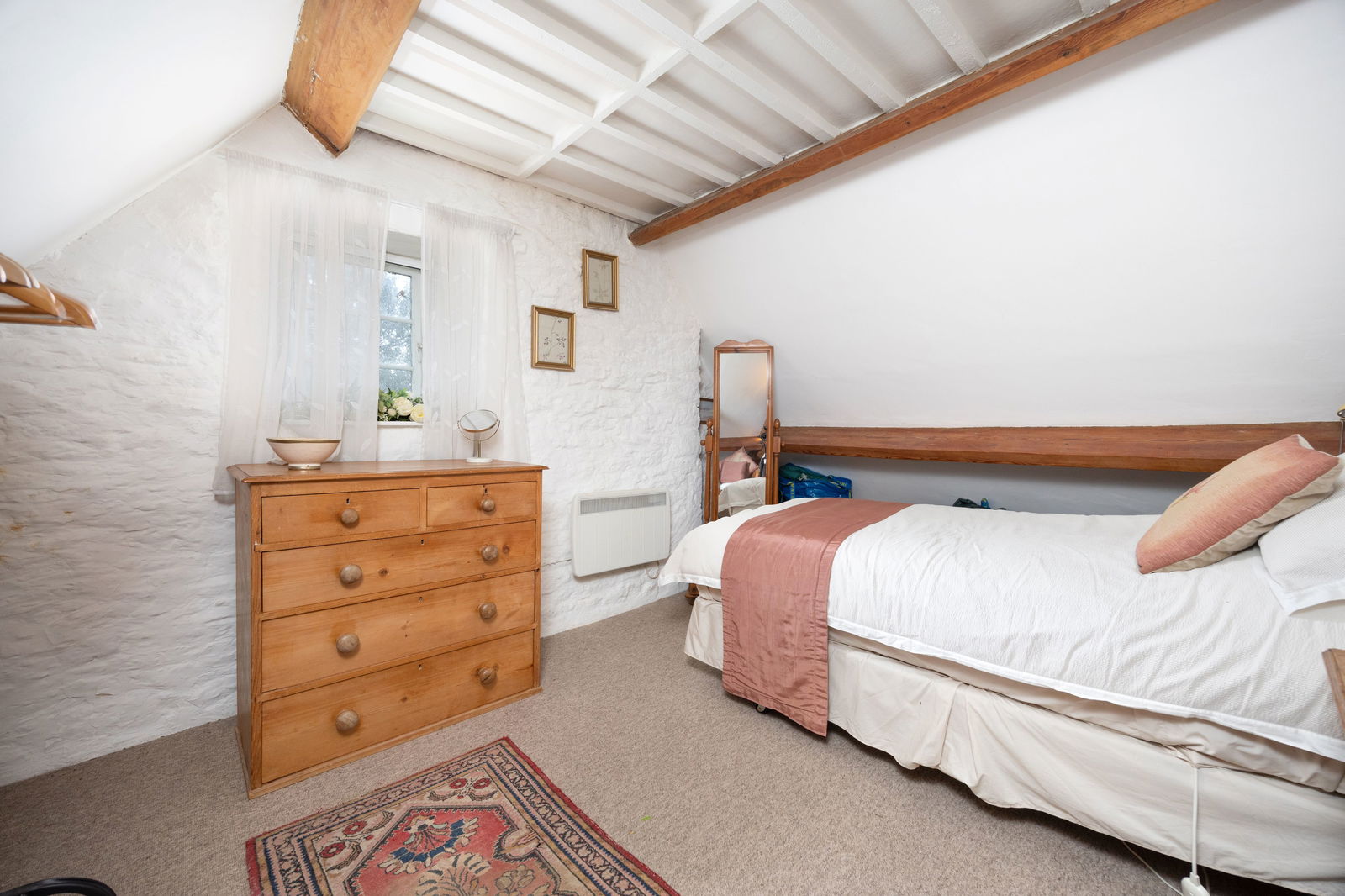 A staircase from the sitting room to the first floor leads to two bedrooms and a handy washroom / WC. The master bedroom enjoys dual aspect windows with an outlook over the front and rear, and original feature stone fireplace surround. Subject to consents, there is potential to create a larger first floor bathroom or ensuite shower-room, if desired. The second bedroom on the first floor also overlooks the front aspect and is large enough to accommodate a single bed.
