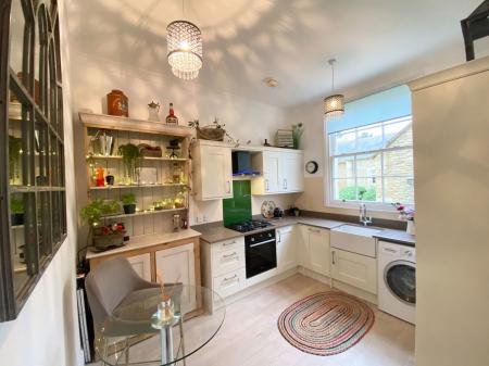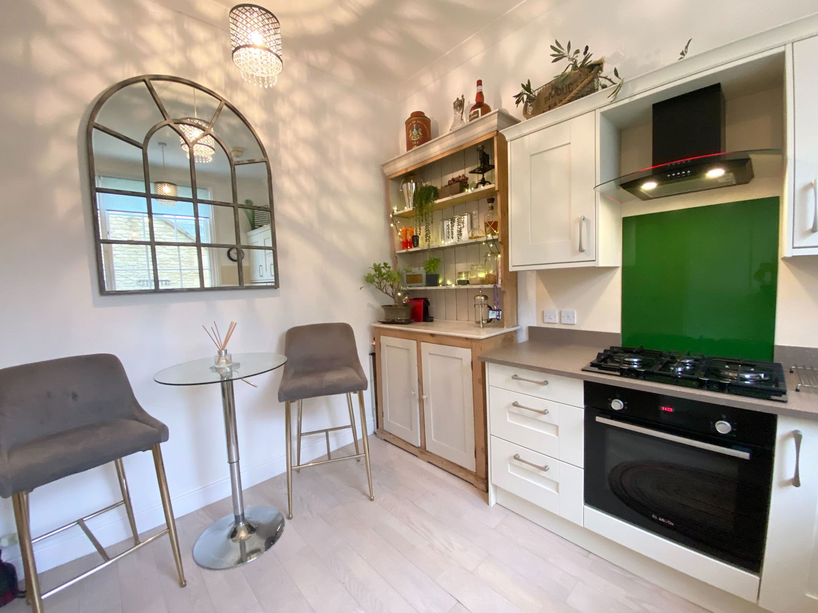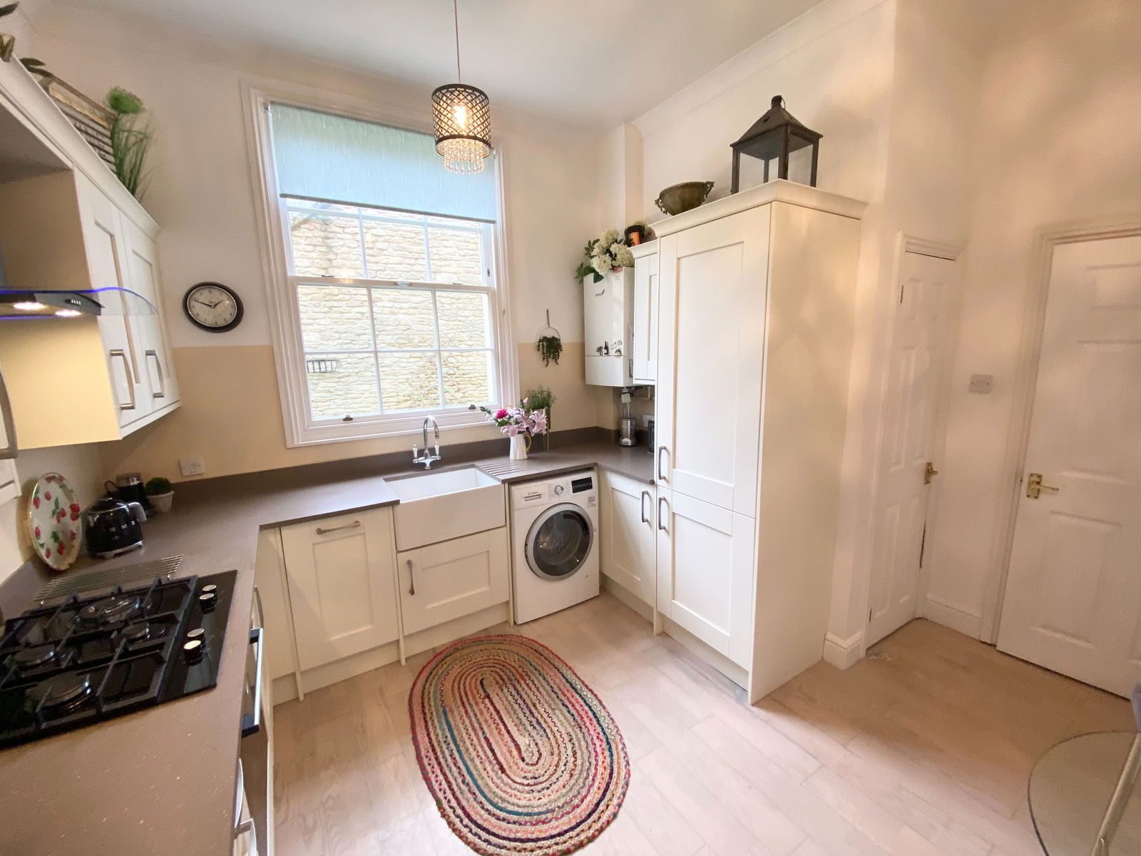 The accommodation begins with a welcoming entrance hall with stairs rising to the first floor. The kitchen is fitted with an attractive range of modern-style units and offers space for a fridge/freezer, washing machine, and dishwasher. It also features an integrated electric oven, gas hob, and cooker hood.