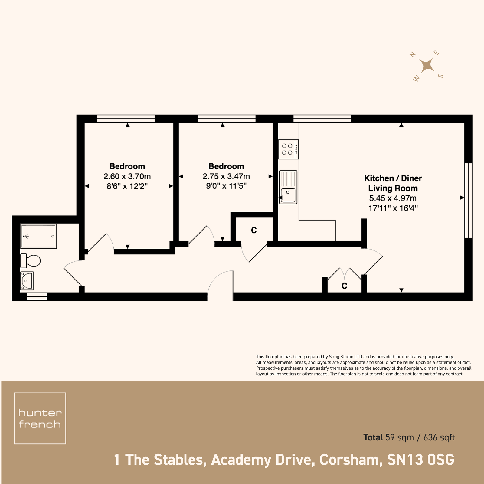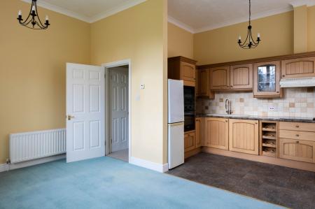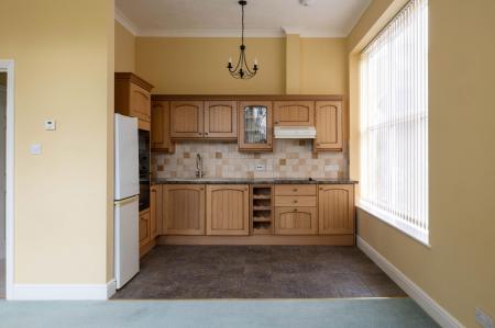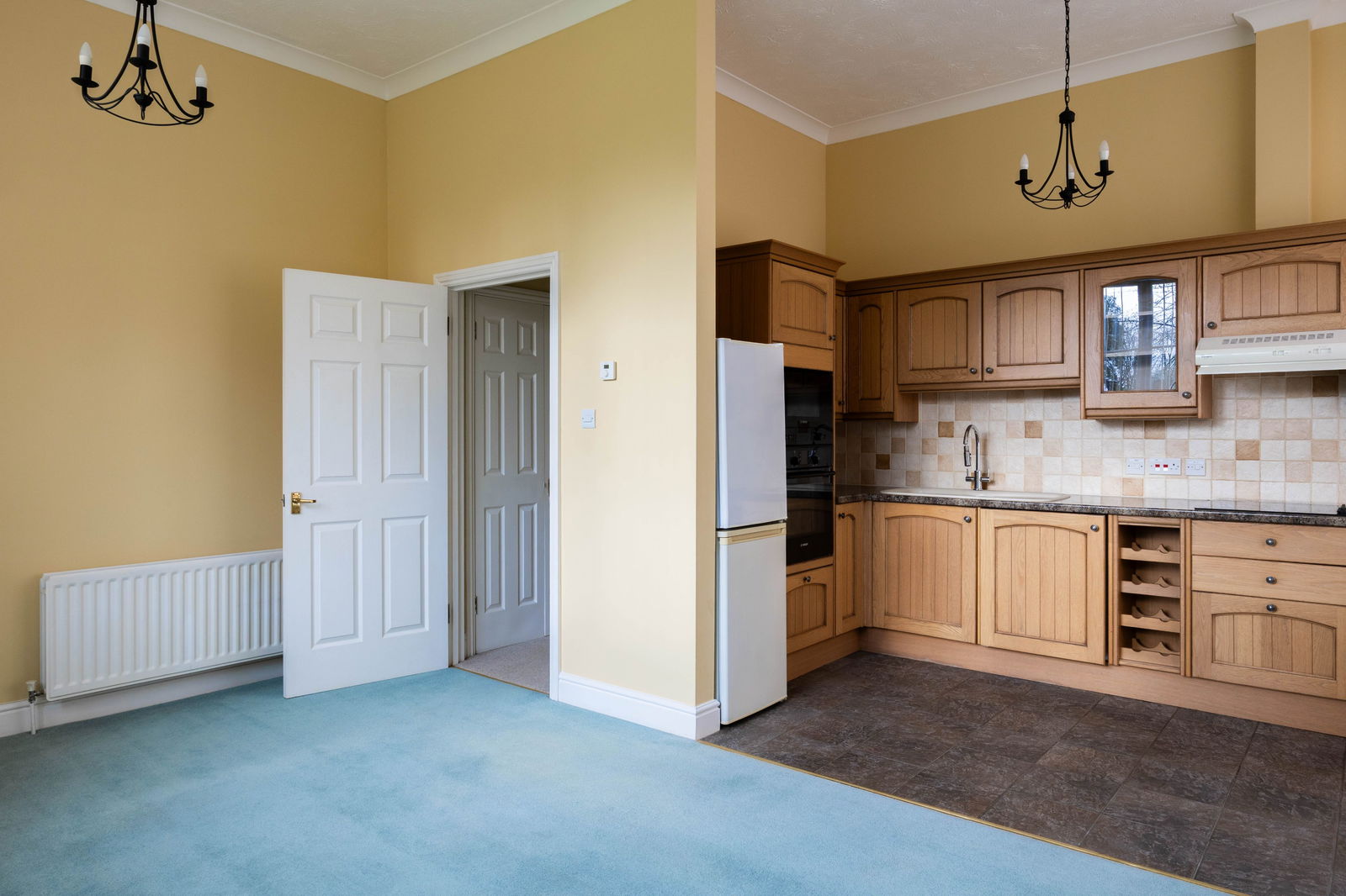 This unique Grade II listed property offers a light and airy space set over a single story. As you enter the property via a private entrance, the entrance hall gives access to the internal accommodation. Overlooking the front aspect and measuring 17’ 11” x 16’ 4”, is the dual aspect kitchen-diner/ sitting room. The kitchen is fully fitted with built in wall and base units, high level oven and microwave with worktop hob, together with washer-dryer. There is also space for a freestanding fridge freezer. There is ample space for a dining table whilst the sitting area enjoys views over the communal gardens. With a south-easterly aspect, this space enjoys plenty of natural light aided by large windows and tall ceilings.