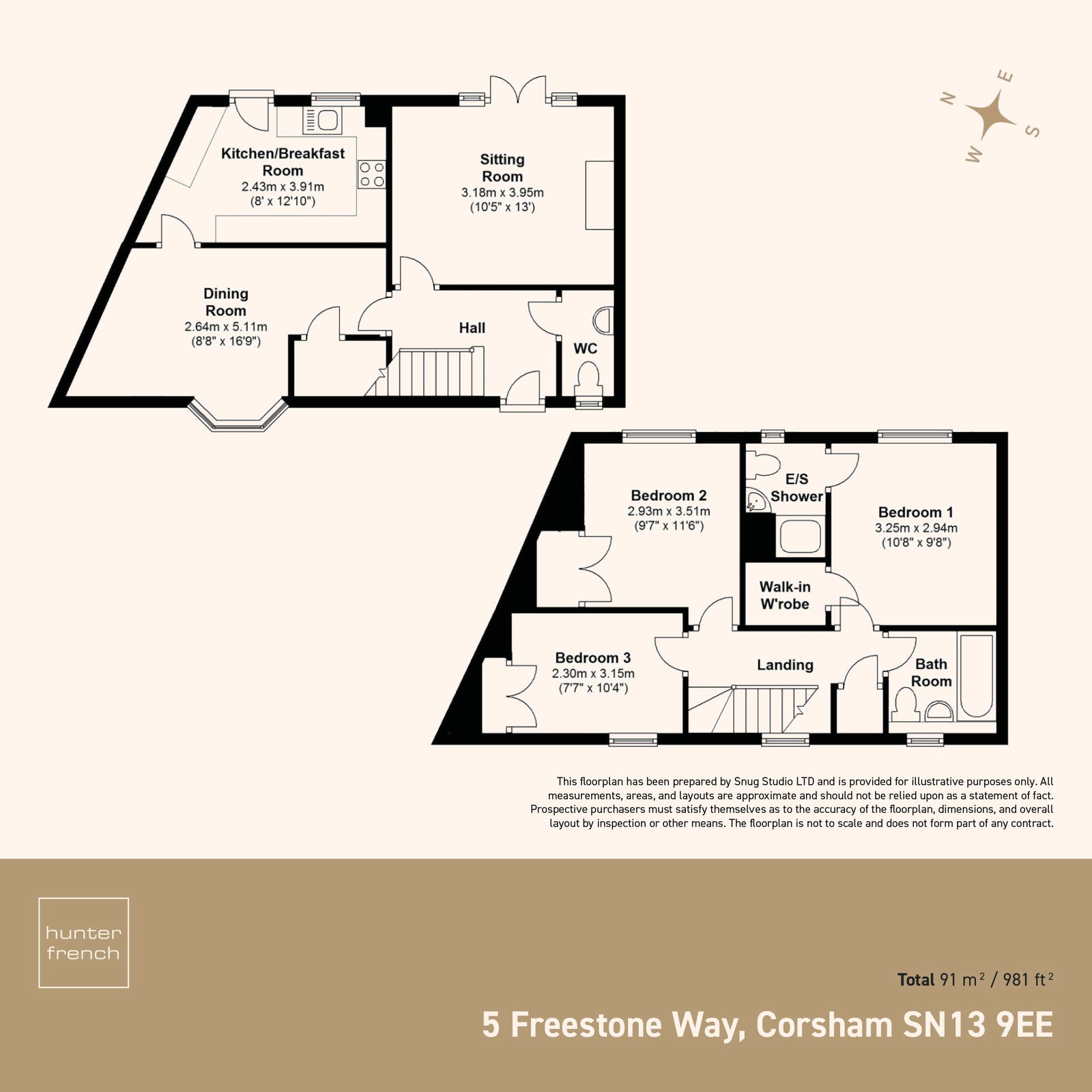 The sitting room also enjoys access to the garden through French doors and benefits from a gas fire which helps creates a cosy feel during an evening and winter months. Measuring 10’ 5” x 13’, the sitting room has ample space for furniture and all the family.