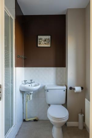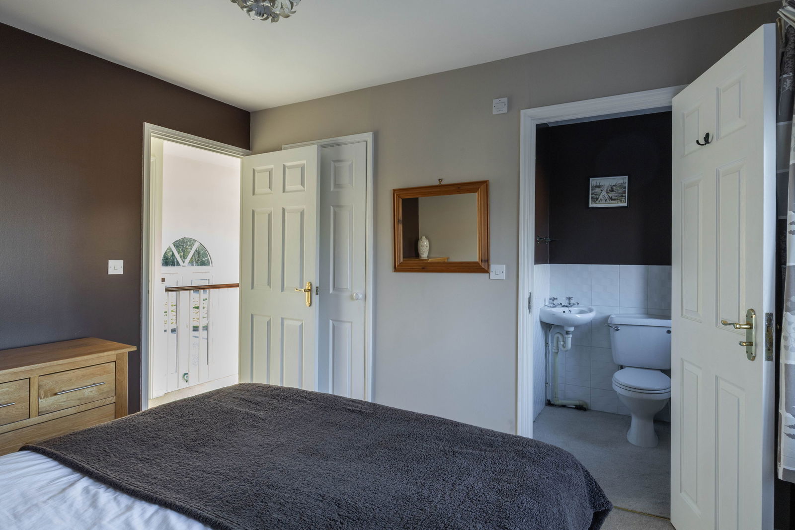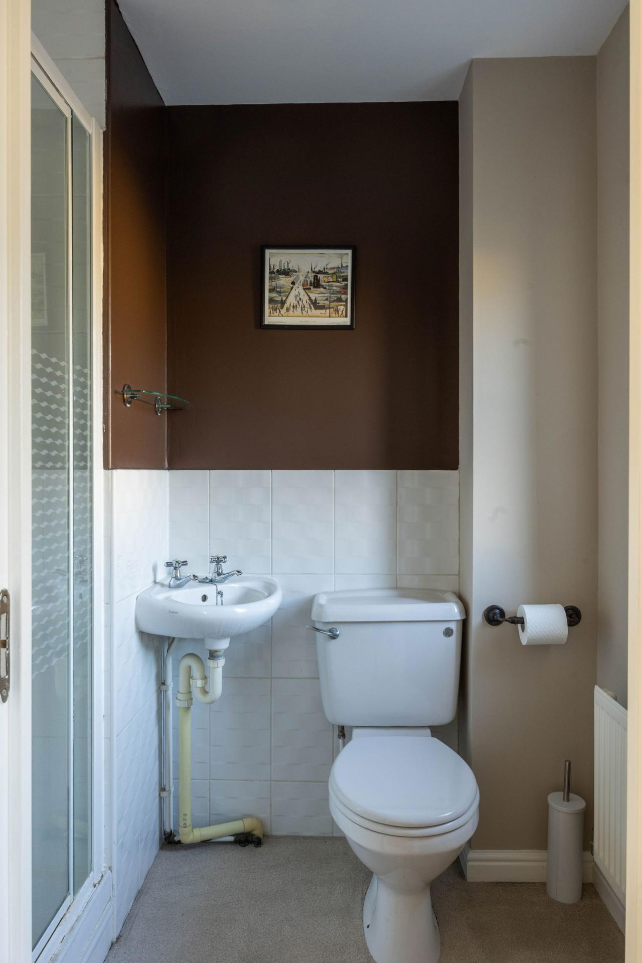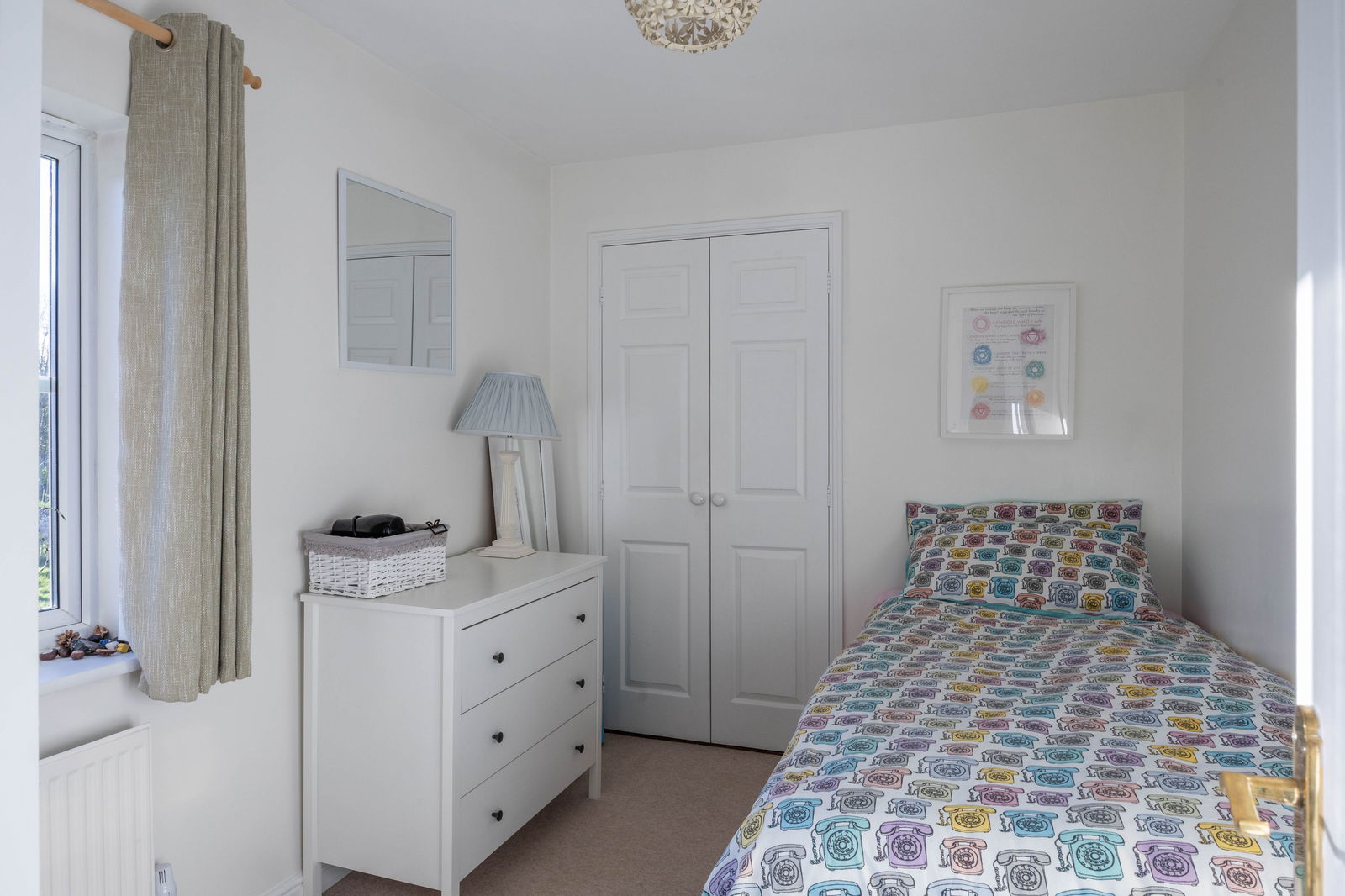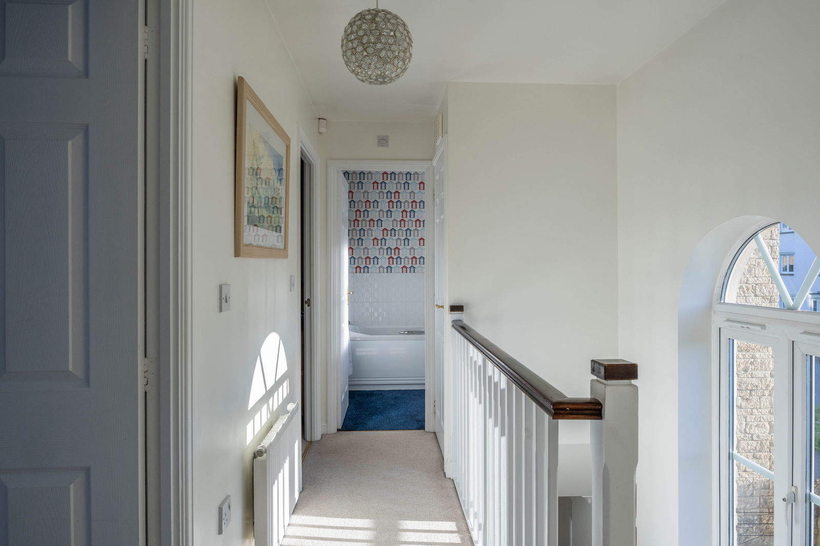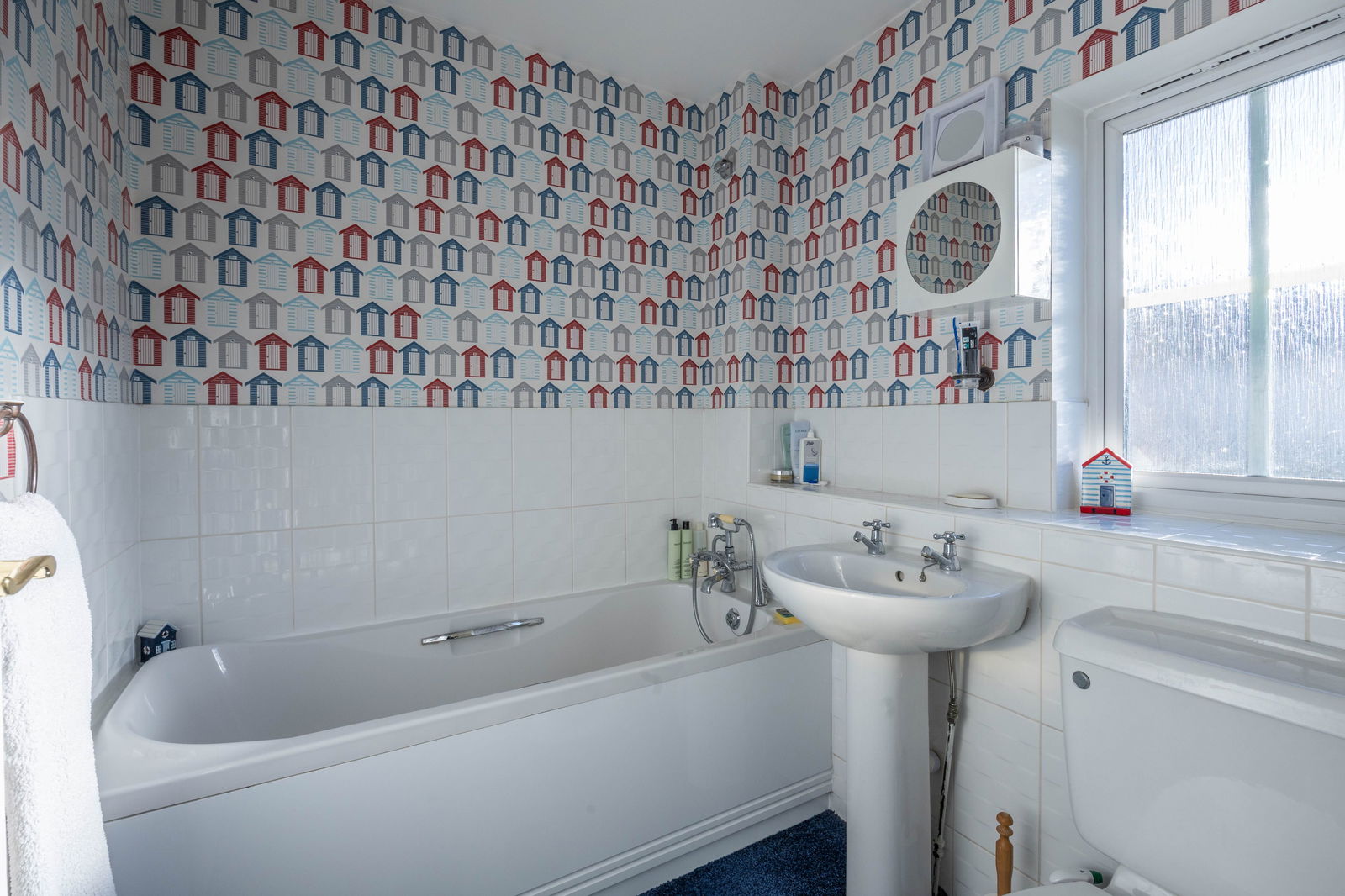 Stairs to the first-floor lead to three bedrooms and the family bathroom. The landing is light and airy benefitting from the afternoon sun through a large characterful window. The master bedroom overlooks the rear aspect with the benefit of an ensuite shower room and walk in wardrobe, whilst bedroom two is also a double room with views over the rear garden. Bedroom three, currently used as a spare room, is a generously sized single room and would make an ideal children’s bedroom, home office, or dressing room. All bedrooms have the added benefit of built in wardrobes. To complete the first floor, the family bathroom comprises of a modern white suite with bath and handheld shower.