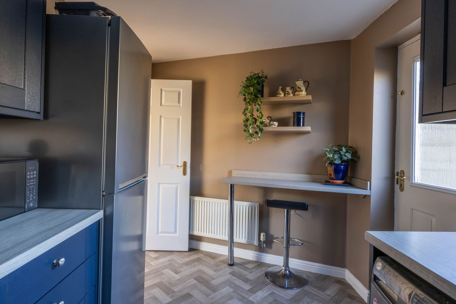 As you enter the property a hallway gives access to the ground floor accommodation, downstairs WC and staircase to the first floor. Overlooking the front aspect and enjoying the afternoon sun through a feature bay window, is the dining room. Measuring 8’ 8” x 16’ 9” the dining room provides ample space for a freestanding table. From the dining room there is access to the kitchen which overlooks the rear garden. The kitchen has been updated by the current owner and includes fitted wall and base units with space for freestanding appliances, as a well a fitted breakfast bar and access to the rear garden.