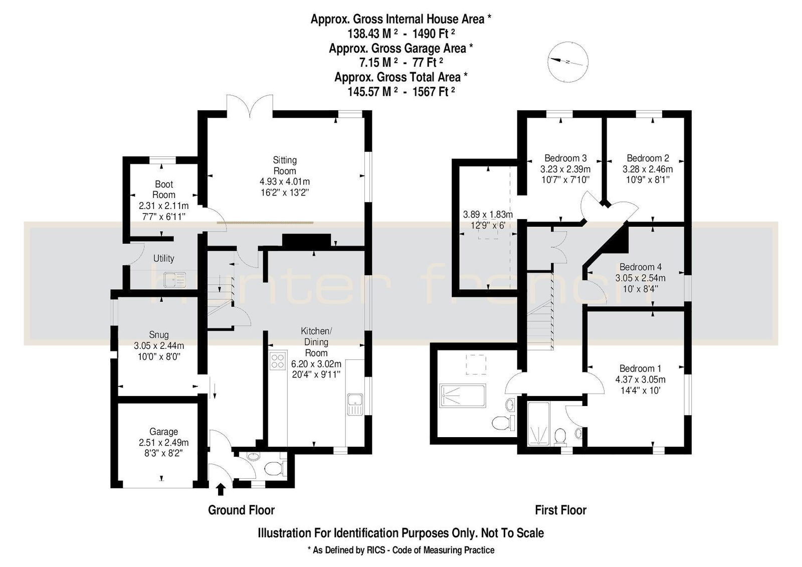 From the sitting room, there is a useful boot room with ample storage space for coats and boots, which in turns gives access to a utility room with space for freestanding appliances. To compete the ground floor, the garage has been converted to create a cosy snug as an additional reception room. Depending on requirements, this space would also make a brilliant playroom or ‘work from home office’. The remains of the garage measure 8’ 3” x 8’ 2” and provide space for storage / gym area, complete with power and lighting.