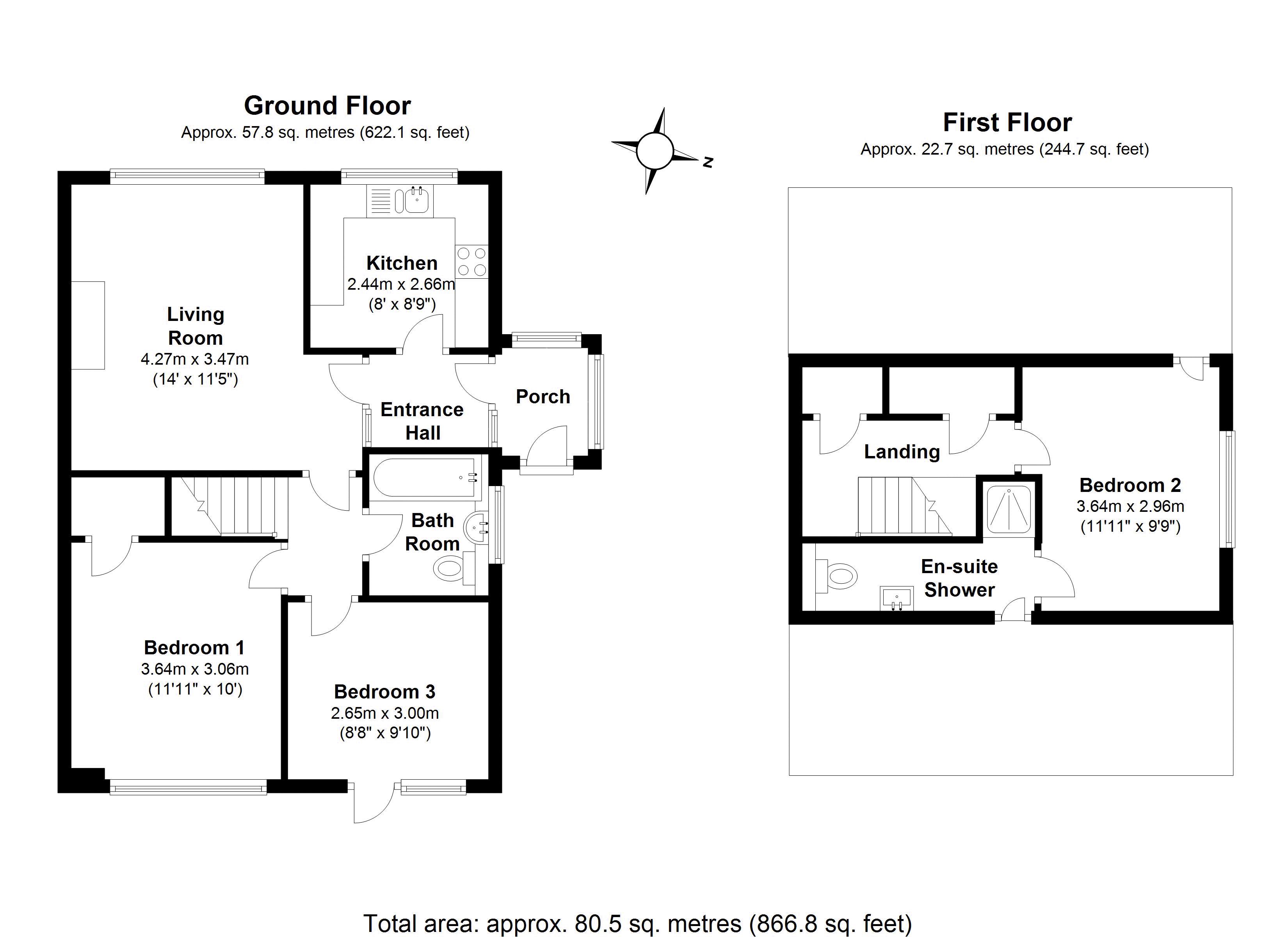 - Three double bedrooms, including a double bedroom with ensuite shower room