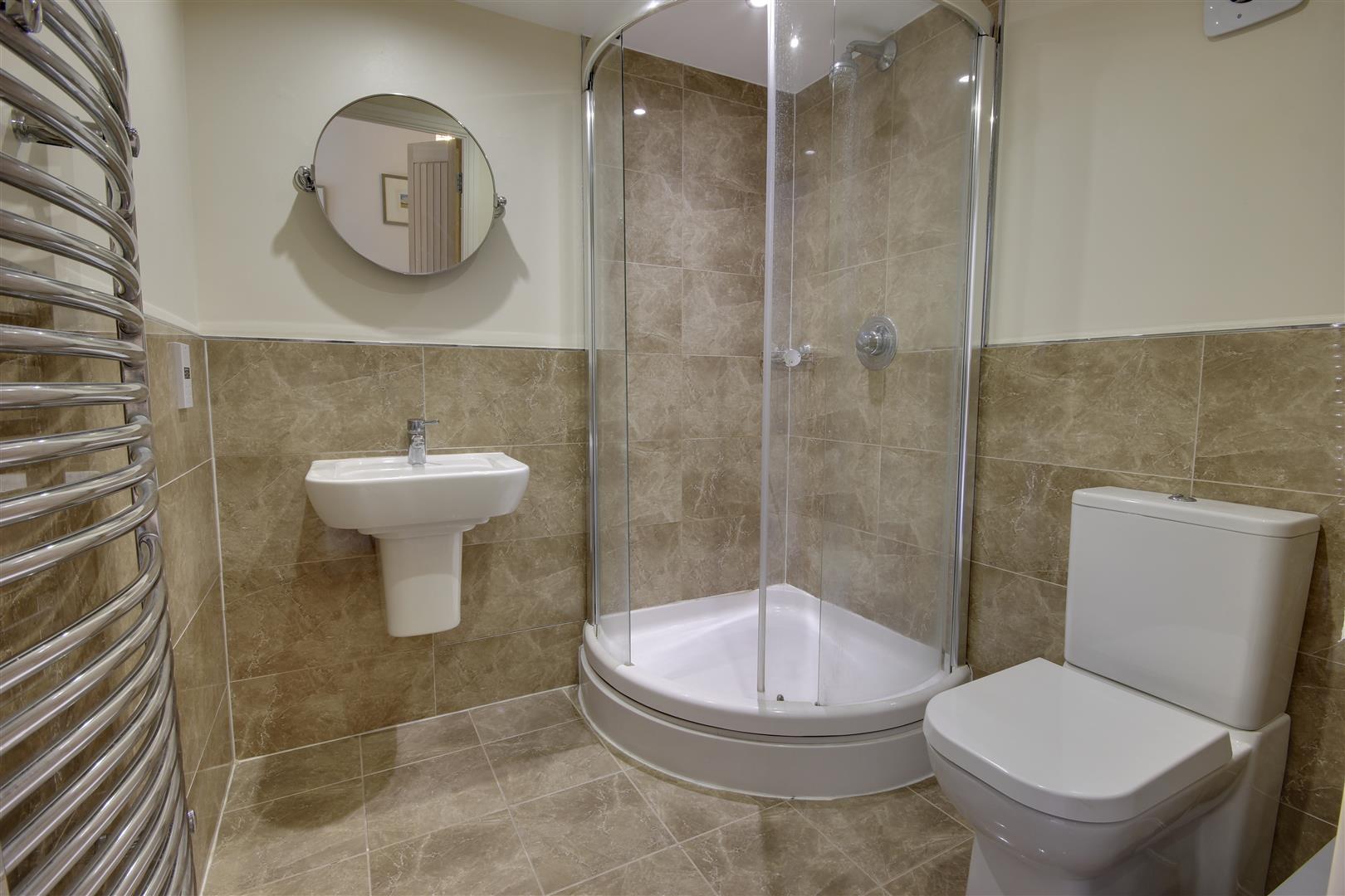 En-Suite - With suite comprising large shower enclosure, wash hand basin, low flush WC, heated towel rail, Porcelanosa tiling to the floor and half tiled walls. Inset downlighters.